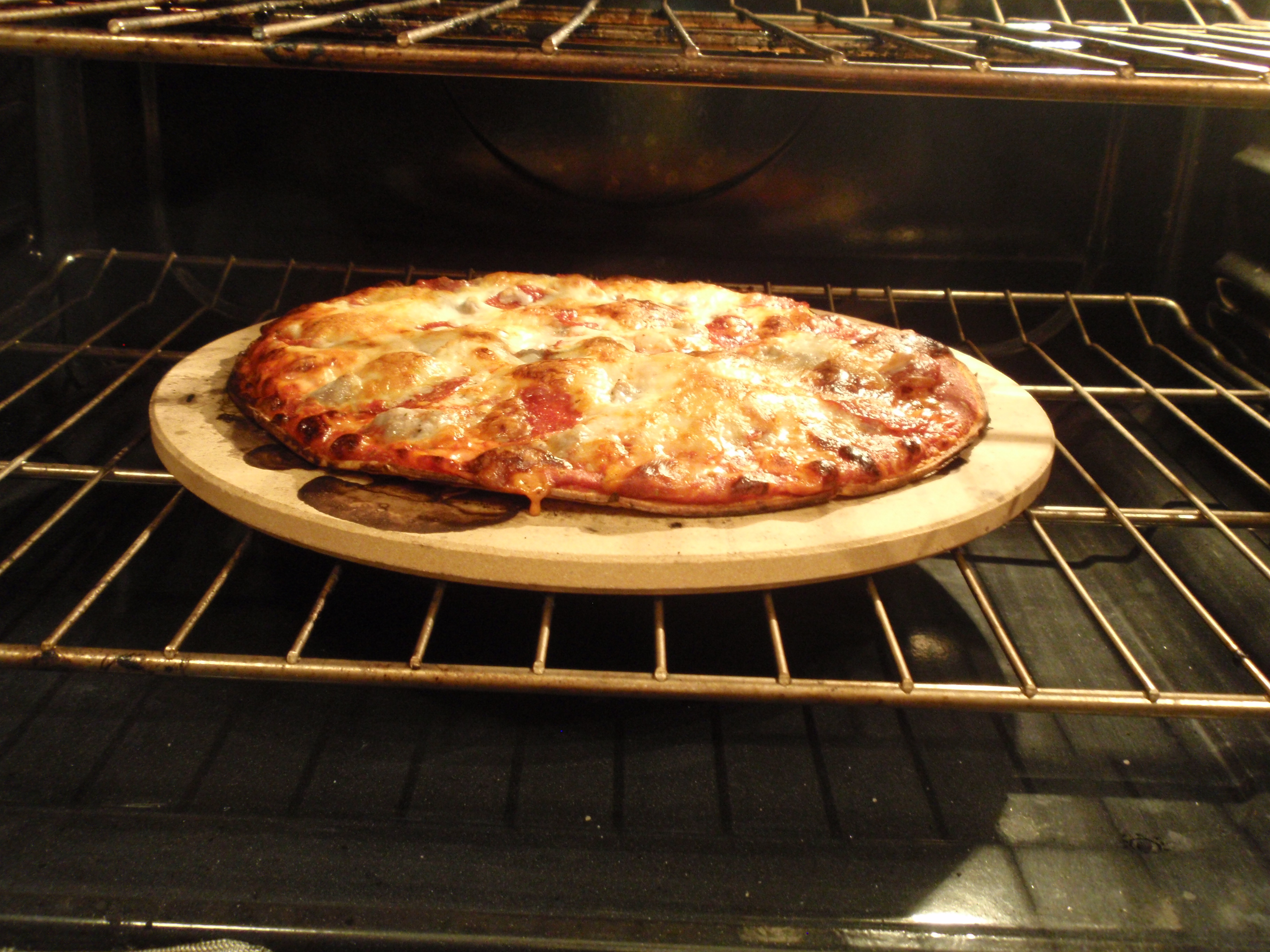 My new oven doesn’t get to 550° (and I’ve learned how to type the ° since I first wrote this). I just crank it up as hot as it will go and make sure I keep it at that temperature an extra 15 minutes to get the pizza stone nice and hot. Longer than 15 minutes is great if you have the patience. I usually don’t.