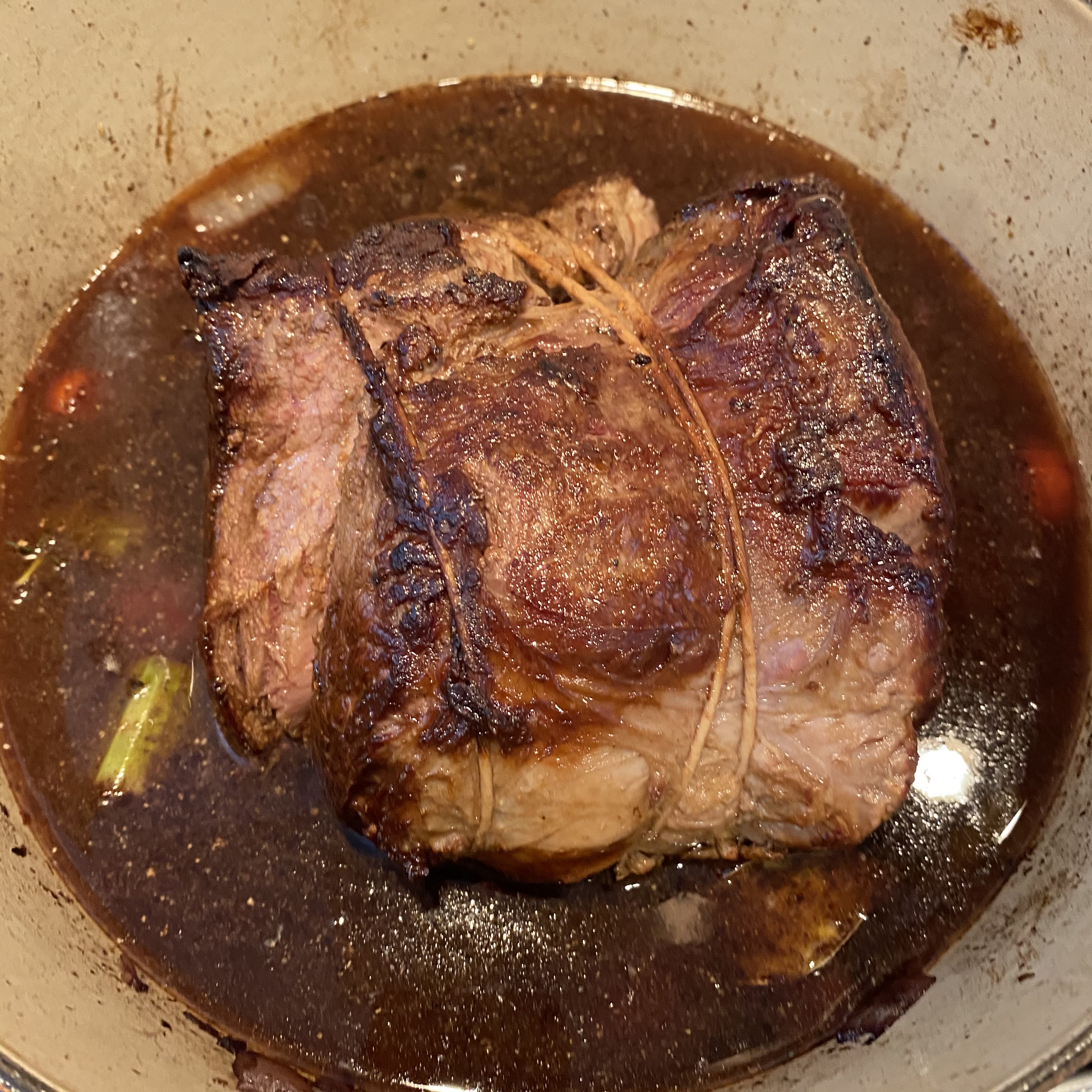 It started snowing yesterday afternoon and is still coming down here at the Lyceum. A foot and a half of snow outside calls for comfort food and so today I’m making pot roast. Pot roast is slow food. The total time to make this recipe is about six hours, but much of that time the roast is simmering, so you can sit back enjoy a glass of wine, read a book or listen to some music, and watch the snow fall.