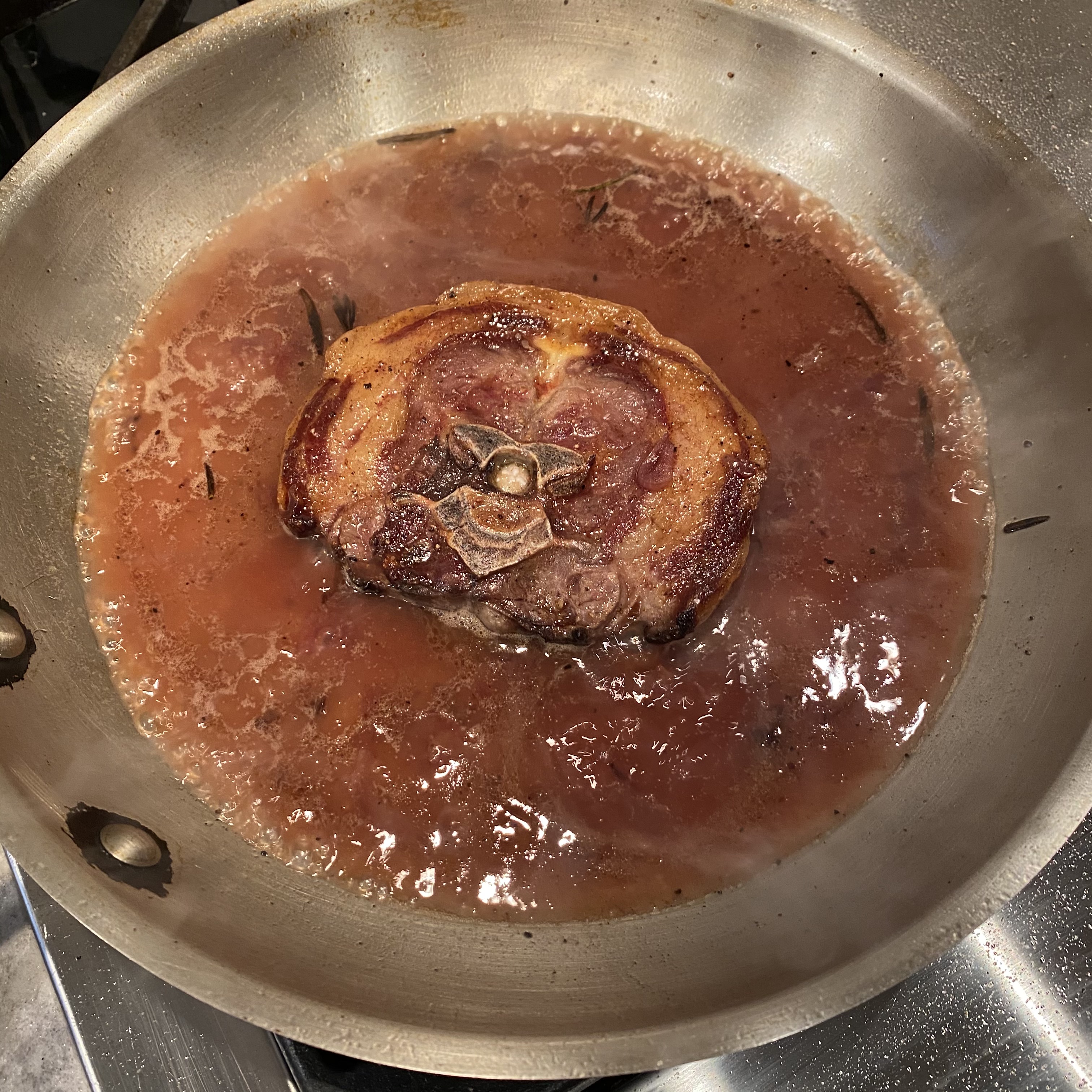 The verdict, the meat was excellent. Maybe a longer cook would have made it more tender, but I liked it the way it was. The flavor was extraordinary, pungent lamb but not too gamey. I find a lot of supermarket lamb has almost no flavor, but when I get small farm lamb it is overly gamey. There was a lot of fat on this cut, but the sear and the long cook made it more like pork belly than beef fat, nothing chewy or gristly. The sauce didn’t hit the mark, the concentrated vegetable broth wasn’t particularly good. I think maybe more wine less broth is the way to go, but then that would be less wine for drinking. I will certainly give it another try both a small slice and maybe soon a whole neck!
