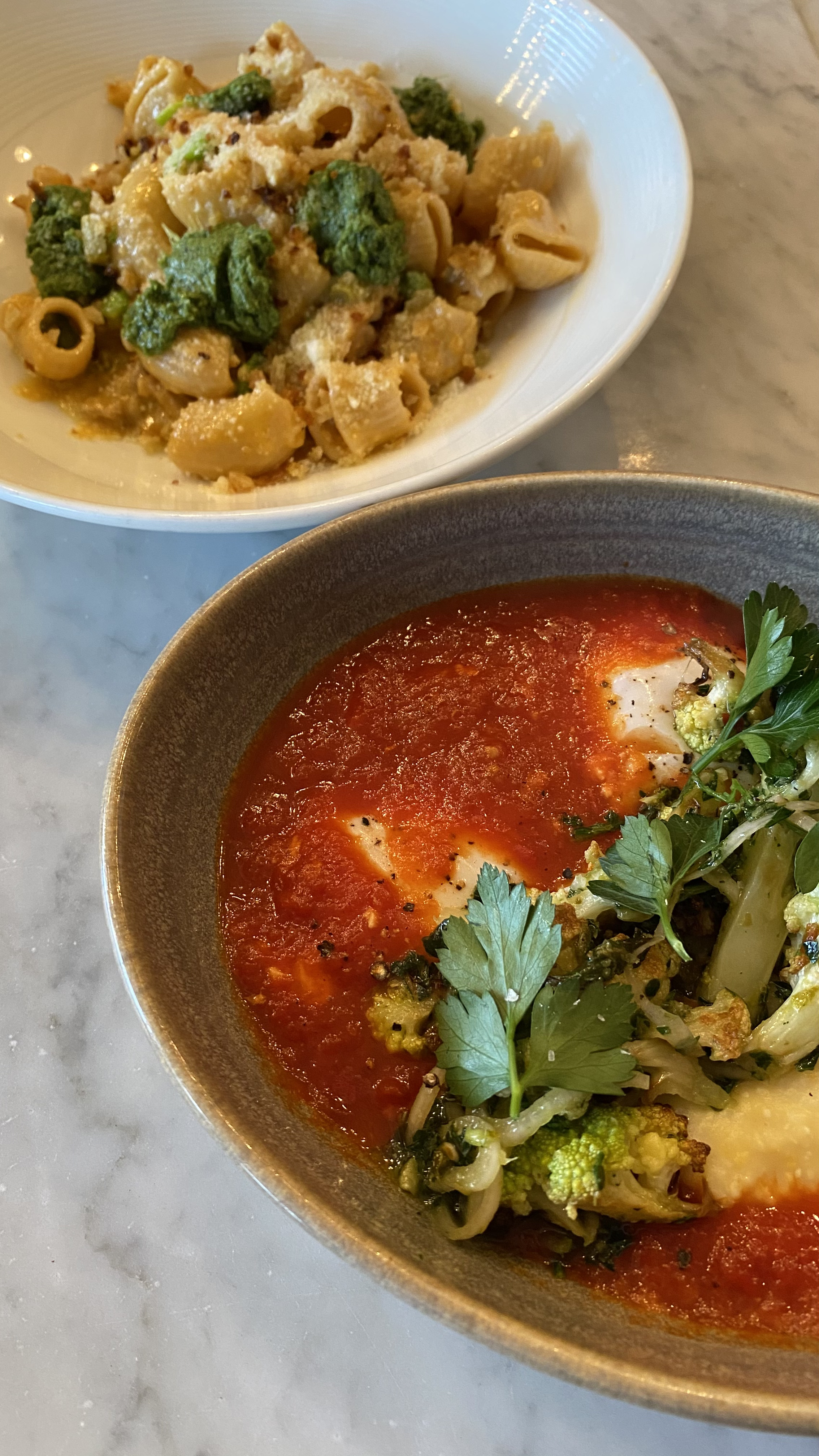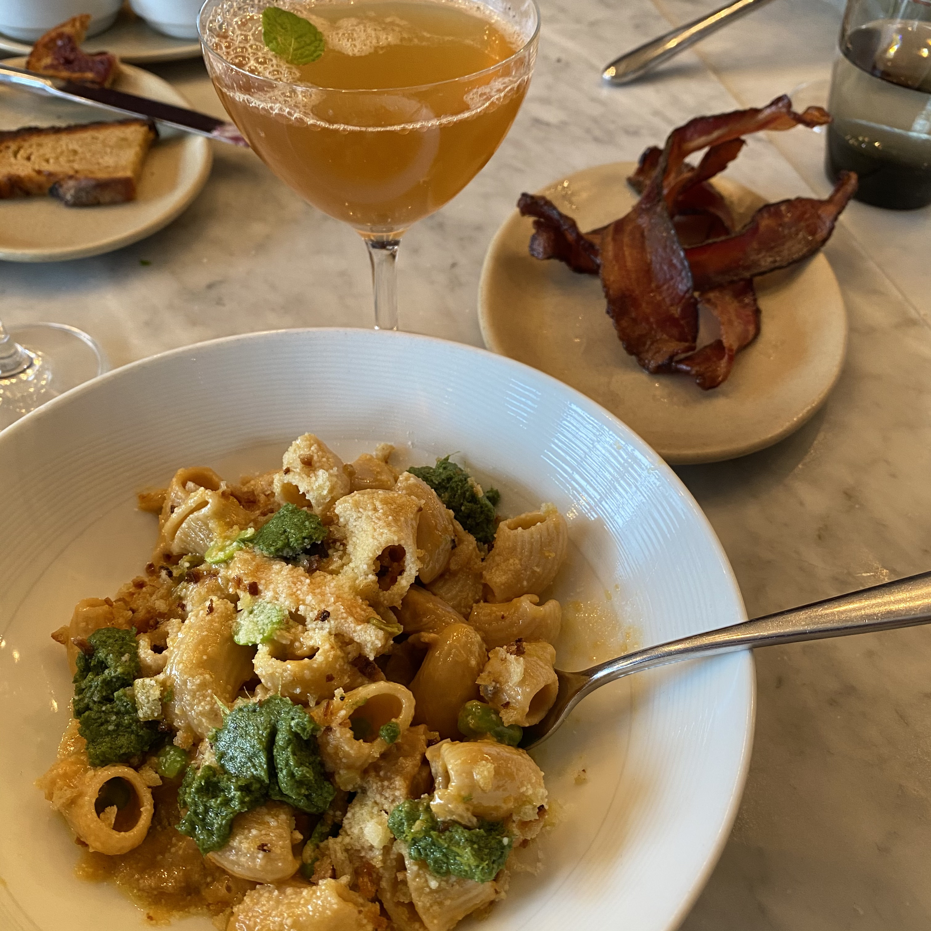 Next came baked eggs served in a spicy tomato sauce along with cauliflower and polenta. I suggest eating them with a generous side of bacon. If you aren’t in the mood for eggs, you can just go straight to the rabbit rigatoni. This dish was incredible. If you haven’t had rabbit before start here. You will find tender rabbit tossed with a beautiful pasta in a creamy sauce. The rabbit is perfectly cooked and fava bean puree dots the top to balance out the richness of the sauce. Fortunately, this dish is also available at dinner and I highly recommend trying it before it moves off the menu.