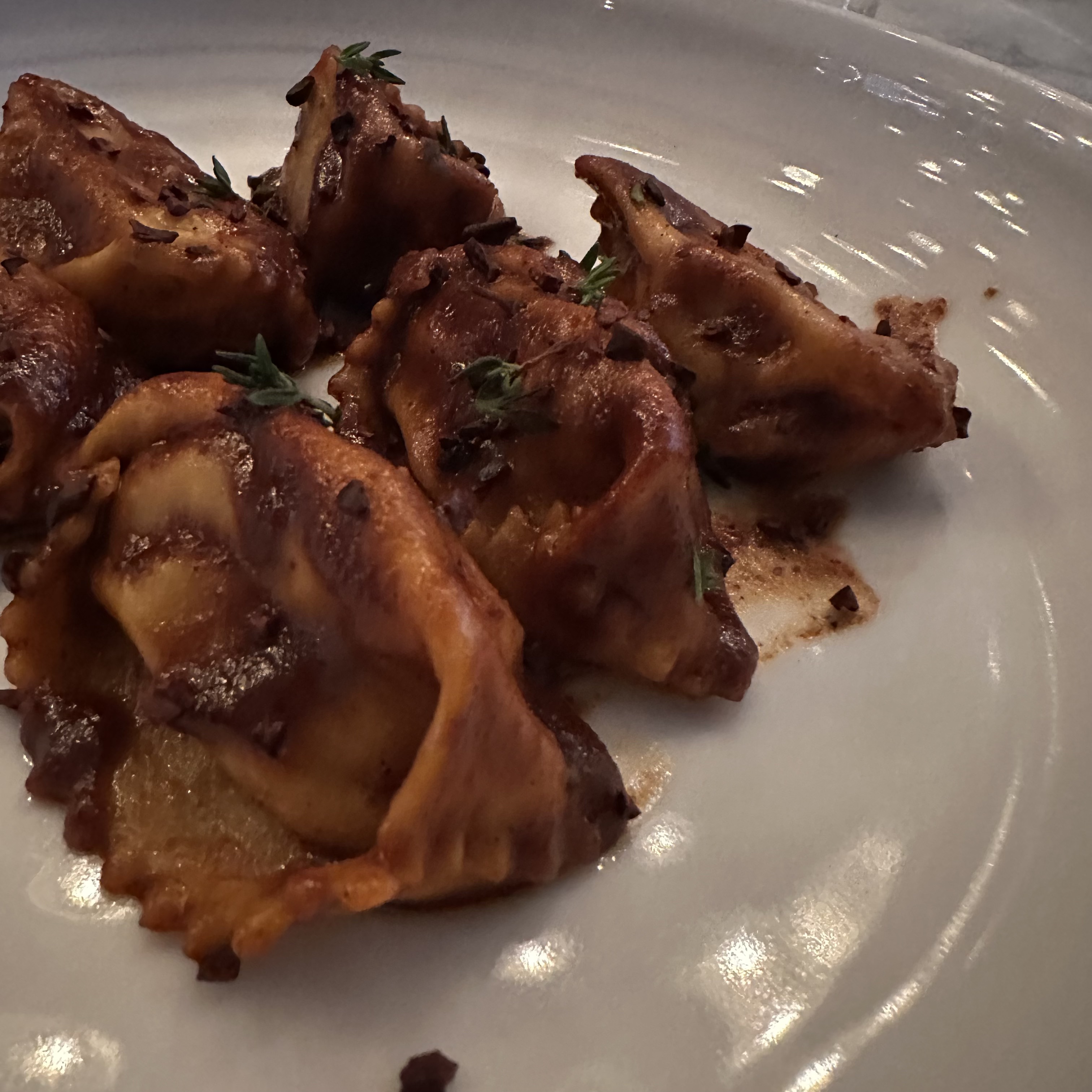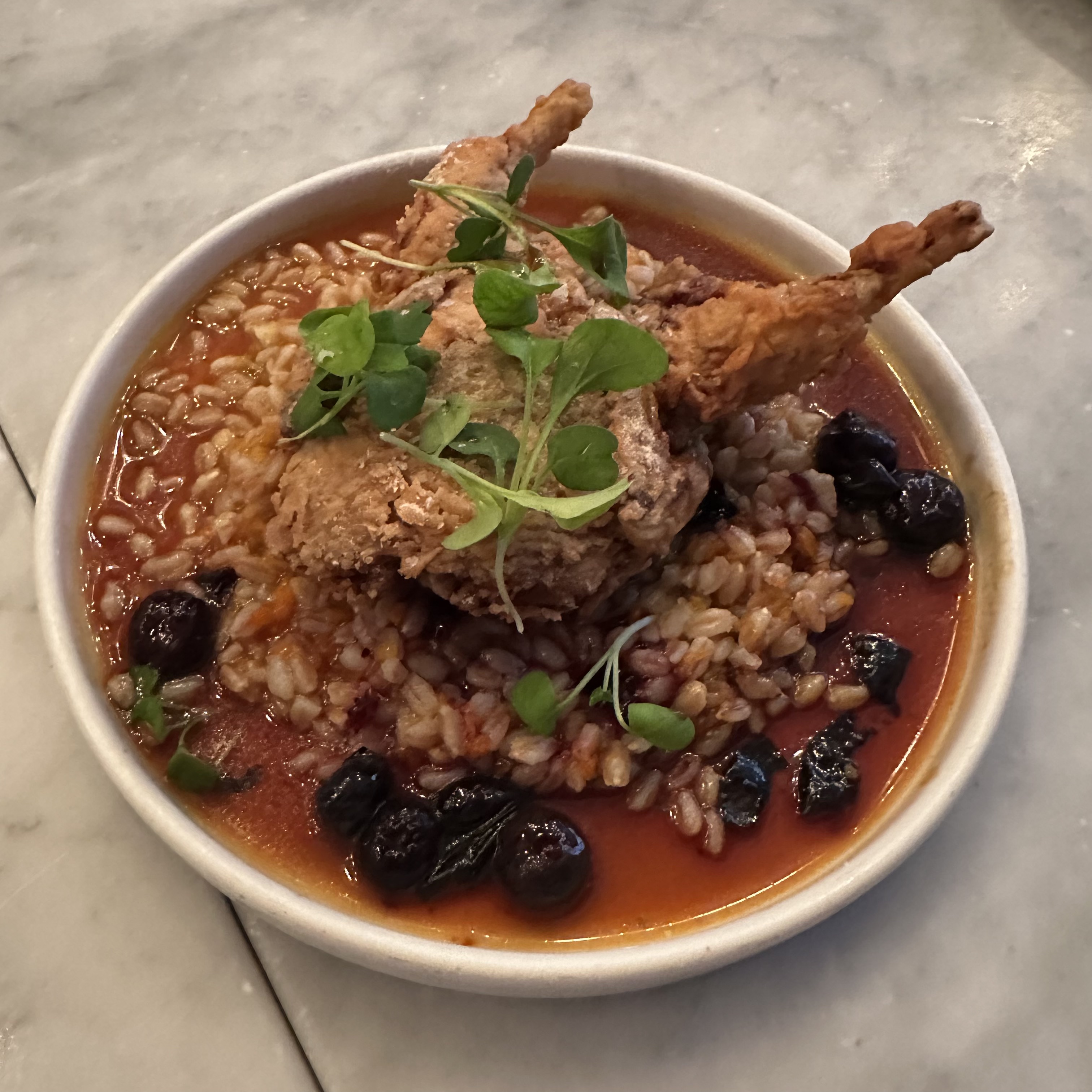 We started with three cicchetti, small bites, barely larger than an amuse bouche. The first was a fava bean crostini, then stuffed cabbage, and last “Vitello Tonnato Tramezzini.” The rich, two-bite cabbages stuffed with a beautiful, green spring onion risotto were fantastic. Even better were the veal finger sandwiches with a tuna sauce, “Vitello Tonnato Tramezzini.” The gently fried veal was almost as light as the choux it was served on. A remarkable bite that should not be missed.
