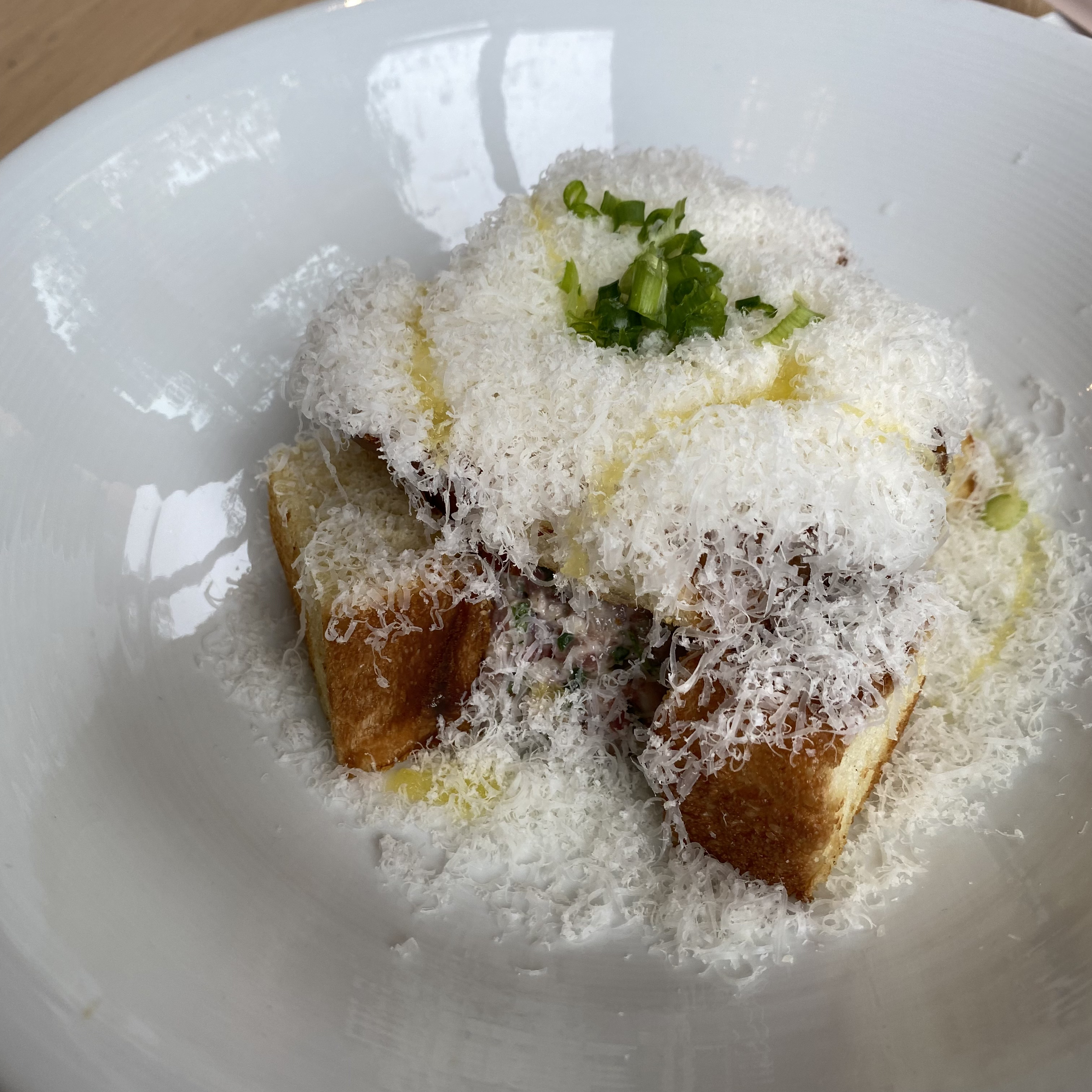 The steak tartare is under the “Toasts” section of the menu which is appropriate given how good the buttered brioche that comes with it is. There is plenty of Parmigiano-Reggiano with a petite quail egg hiding under it. It’s dressed with a truffle aioli, so if you are a truffle oil addict, this one’s for you.
