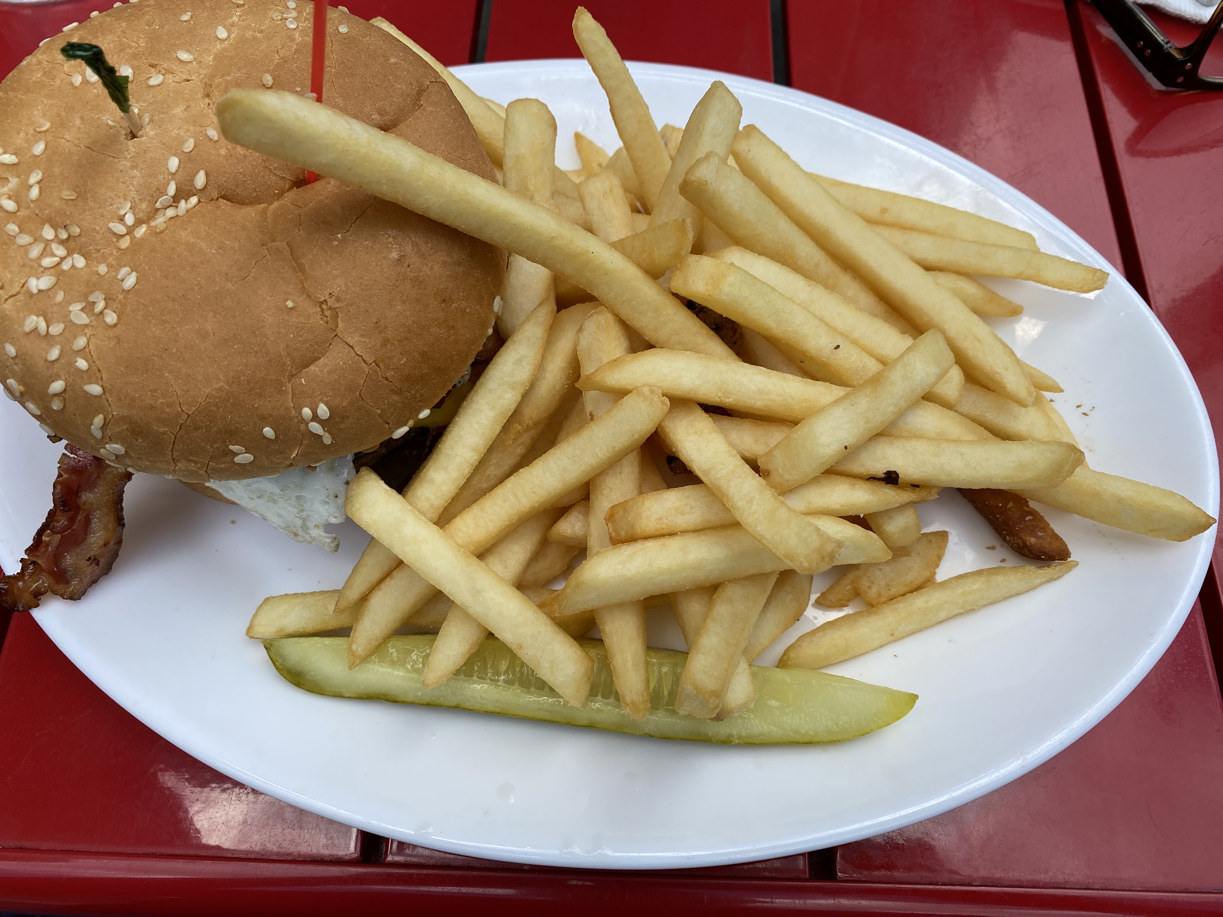 Today I went with the Kamala Harris burger. I am pretty sure this used to be named for Mayor Menino, but the names change with the times. I’m left wondering how long the Ted Kennedy burger has been off the menu. The burger formerly named for Mayor Menino is a basic burger topped with bacon, egg, and cheese. I’ve been eating it for a decade or two, long before “brunch burgers” were a common thing, and I still always enjoy it.