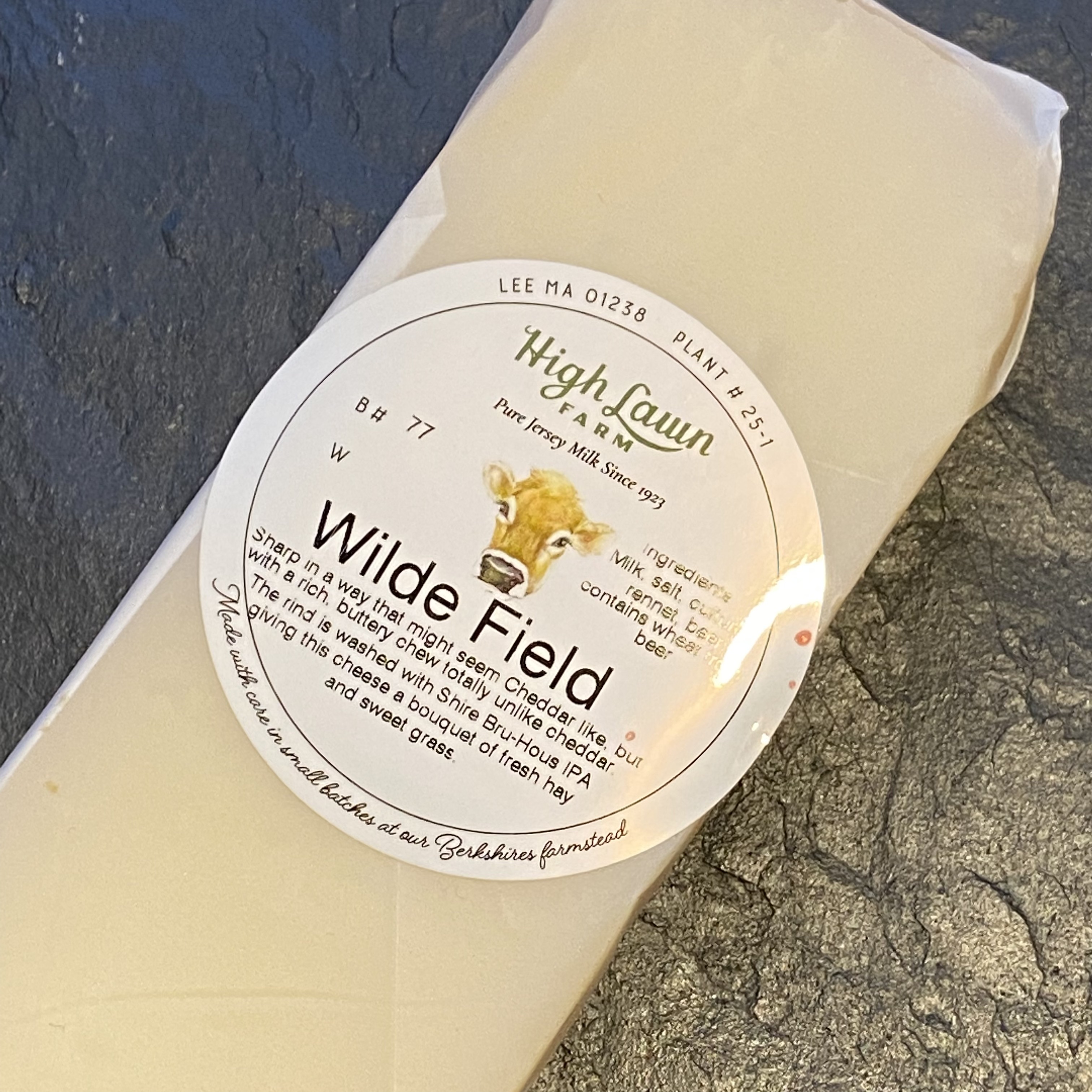 Wilde Field is a cow’s milk cheese from High Lawn Farm in Lee, Massachusetts. Lee is about two hours west of Concord just fifteen minutes from the New York State line near the Berkshire Mountains. In addition to cheese, High Lawn Farm makes ice cream, butter, and most importantly the milk we drink here at the Lyceum.