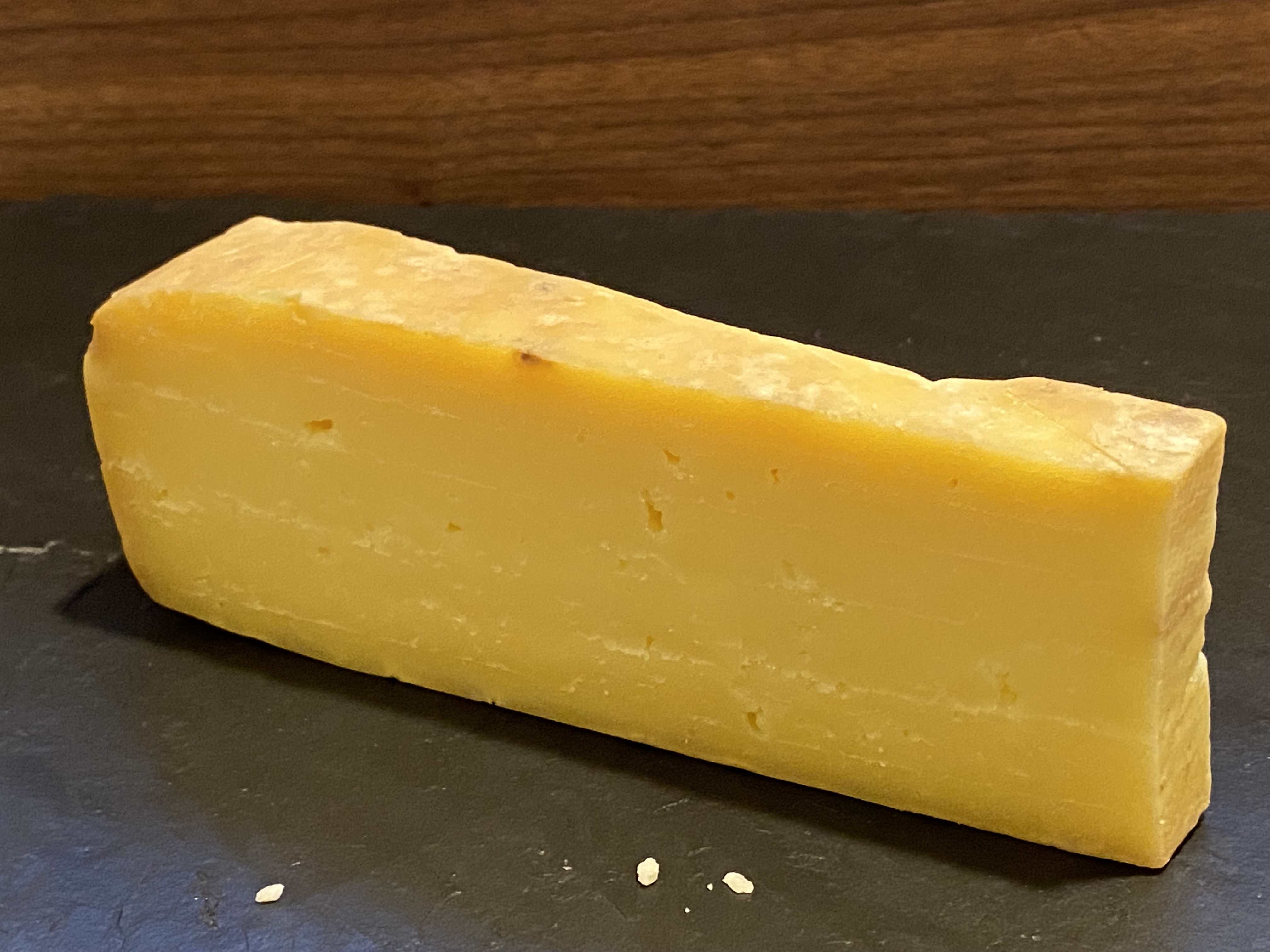The cheese is made from Jersey milk, of course, which is known to be richer and more nutritious than average milk. That’s why we drink it here. It is aged three to eight months and the rind is washed in Shire Breu-Hous IPA from nearby Dalton, Massachusetts. Made in the style of Italian Toma, the texture is firm, but not dry. And the flavor is slightly sharp, balanced out with sweet grassy and nutty notes.