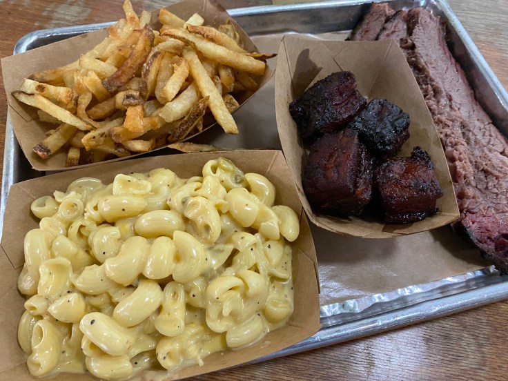 The bacon burnt ends, little smokey-sweet cubes of pork belly, were also awesome. Heim is famous for this dish. They are a little chewy, a little fatty, and a lot delicious. These things are addictive. In 2017, the Dallas Observer named it the 22nd best dish in the area. Likewise, the green chile mac and cheese is really good. It is so incredible creamy and goes perfectly with the bacon burnt ends. These two dishes feel like they were made for each other.