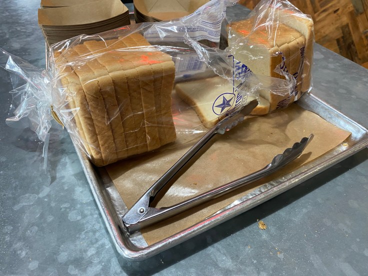 Our order was, brisket, bacon burnt ends, green chile mac and cheese, fries, and a couple of margaritas. The brisket was the best I have ever had. I know that’s a bold statement and I fully stand by it. Absolutely perfect. There was a high fat content that kept it tender, but there weren’t big bites of fat as there often is with lesser brisket. The smoke permeated the meat, making it packed with flavor. Pro tip: grab some pickles and white bread, both out for the taking, and build yourself a little brisket sandwich with their spicy Habanero sauce.