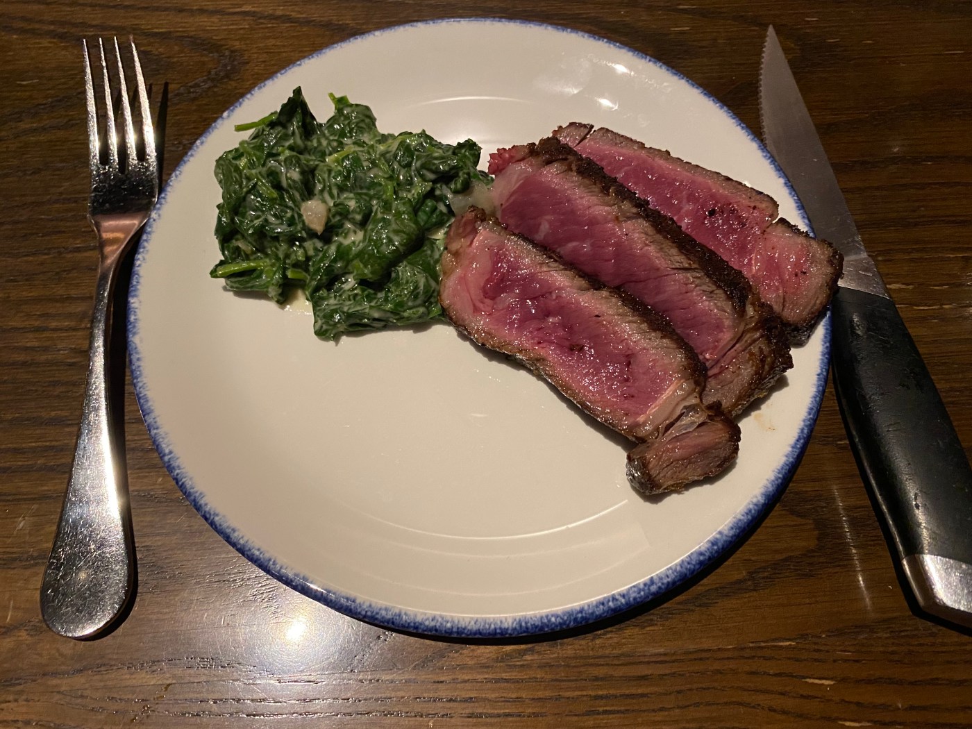 The ribeye was heaven. Bone-in, ordered medium rare, it came out perfect. At 32 oz, it comes sliced and ready to share, which is good since it will cost you $125. But it is worth it, one of the best steaks I have had in a while. What really makes it exceptional is how broken down the fat was. Every bite of meat was delicious, no gristle, no big hunk of gnarly fat, but not over cooked. Once we finished the meat I picked up the bone and went to town. I did get a couple of funky bites close to the outside part of the bone, so I know it was really aged as long as they said it was. I enjoyed it with a side of creamed spinach and a bottle of La Jota 2017 Howell Mountain Cabernet Franc. I recommend both.