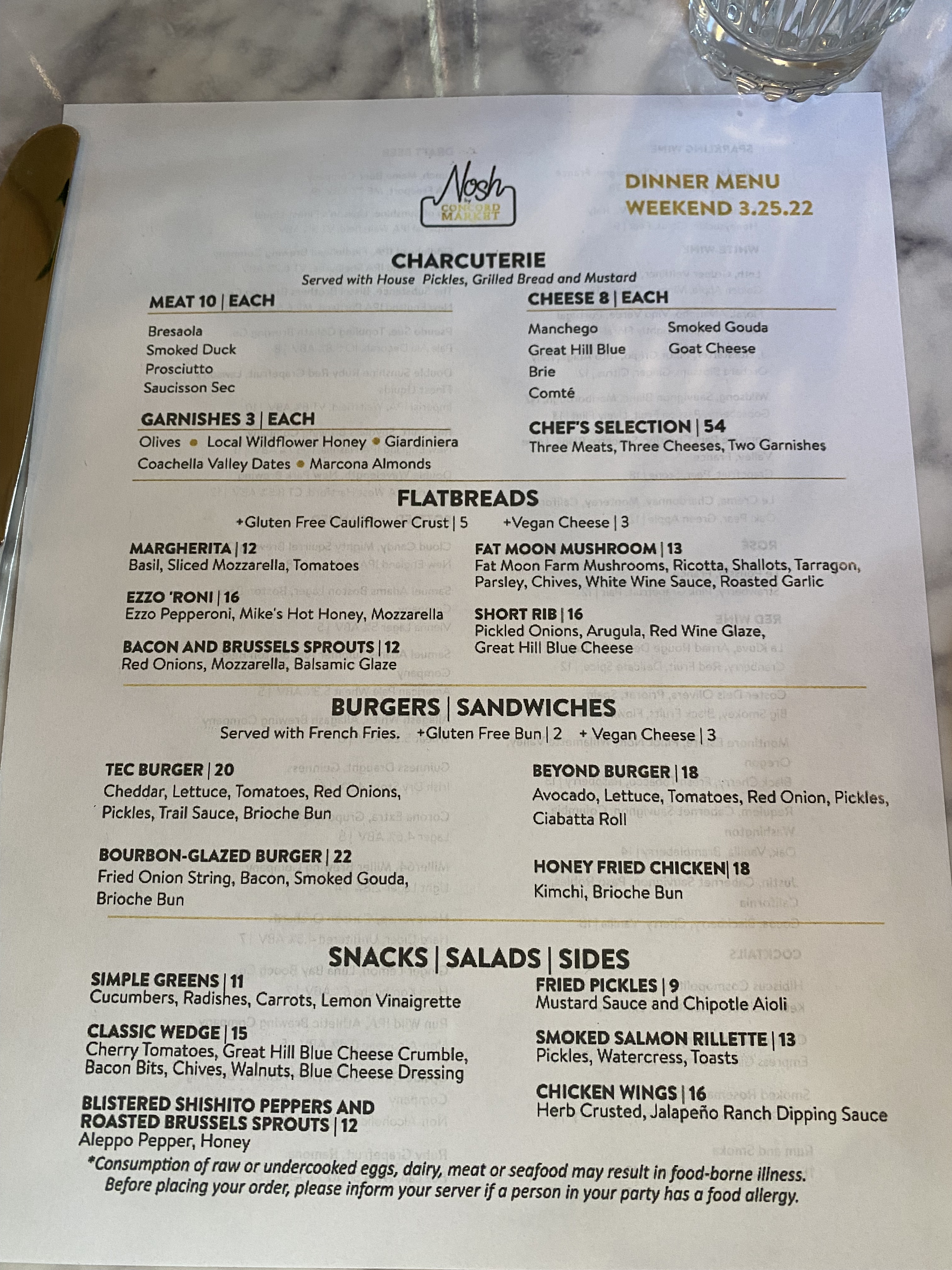 If you follow me on Instagram, and you should, you will see I do a lot of shopping at Concord Market. So of course, I wanted to be at opening night of their new restaurant Nosh. It is located in the same space that Trail’s End occupied for many years before the pandemic brought it to an end. And although Trail’s End is gone, it is still can be seen if you know where to look.