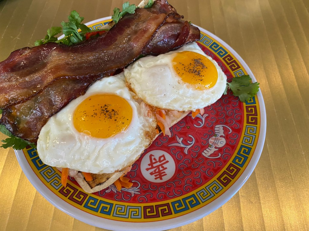 Earlier this year, we visited Myers + Chang as part of our tour of Boston Magazine’s Hall of Fame Restaurants. Yesterday we returned to try their brunch. Much of the brunch menu is a paired down version of the dinner menu, but there are additions, most notably the Fried Egg Banh Mi with Soy Glazed Bacon. There are also some fun brunch cocktails. The Cherry on Top, a gin highball with almond syrup and pineapple, is sweet and delicious.