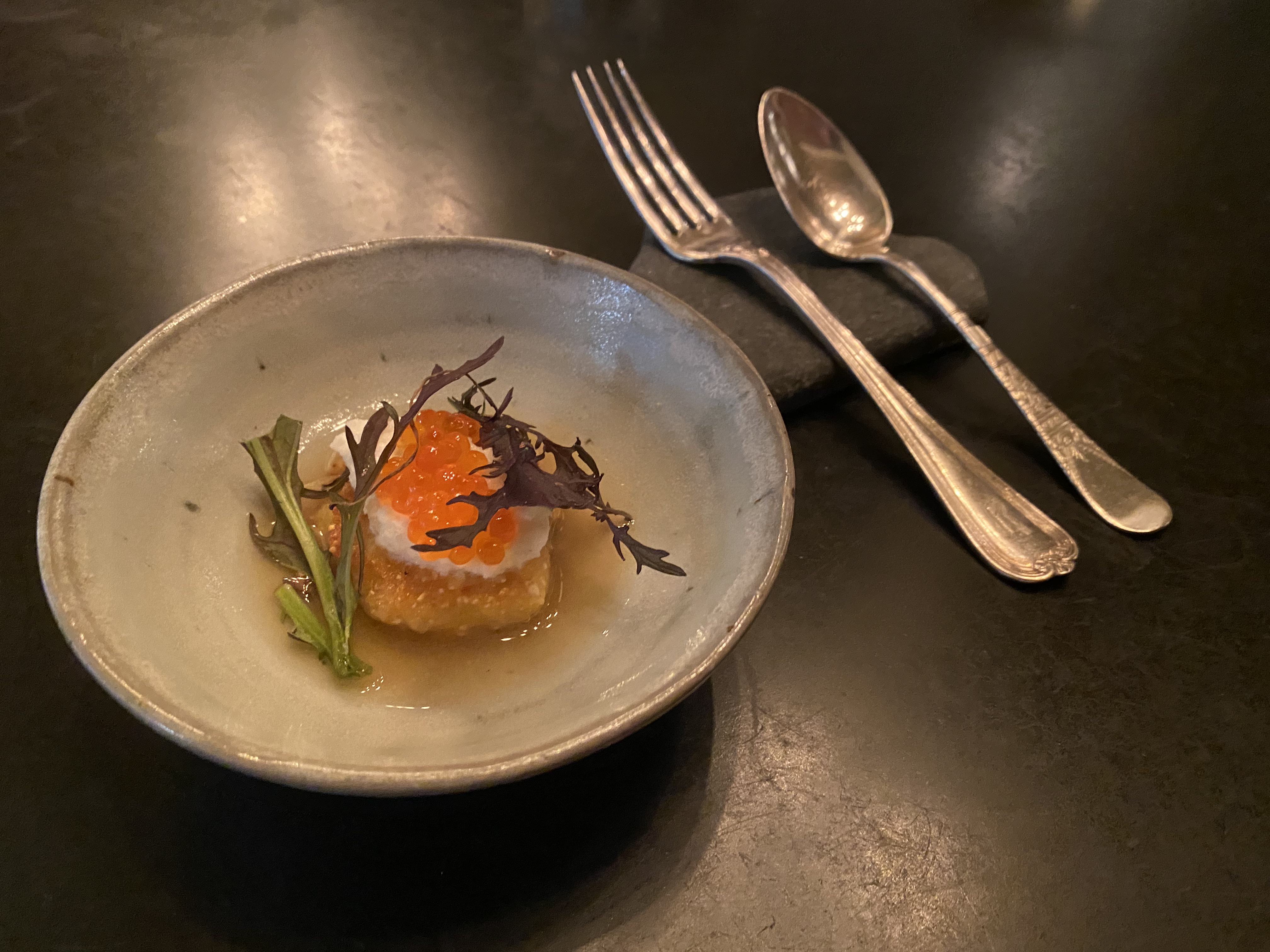 Asta is not just a restaurant, it’s an experience. You buy your tickets in advance. There is no menu, and I don’t mean there is a QR code. There is no menu at all. To reserve your seat, you purchase the tasting menu, the only choice, for $110 per person. You also pay a tip in advance. When you arrive, you can add drinks, like the wine paring for $65 per person. There are a couple of supplemental courses you can add. The night I visited there was a seared fois gras course and a cheese course. We got them both.