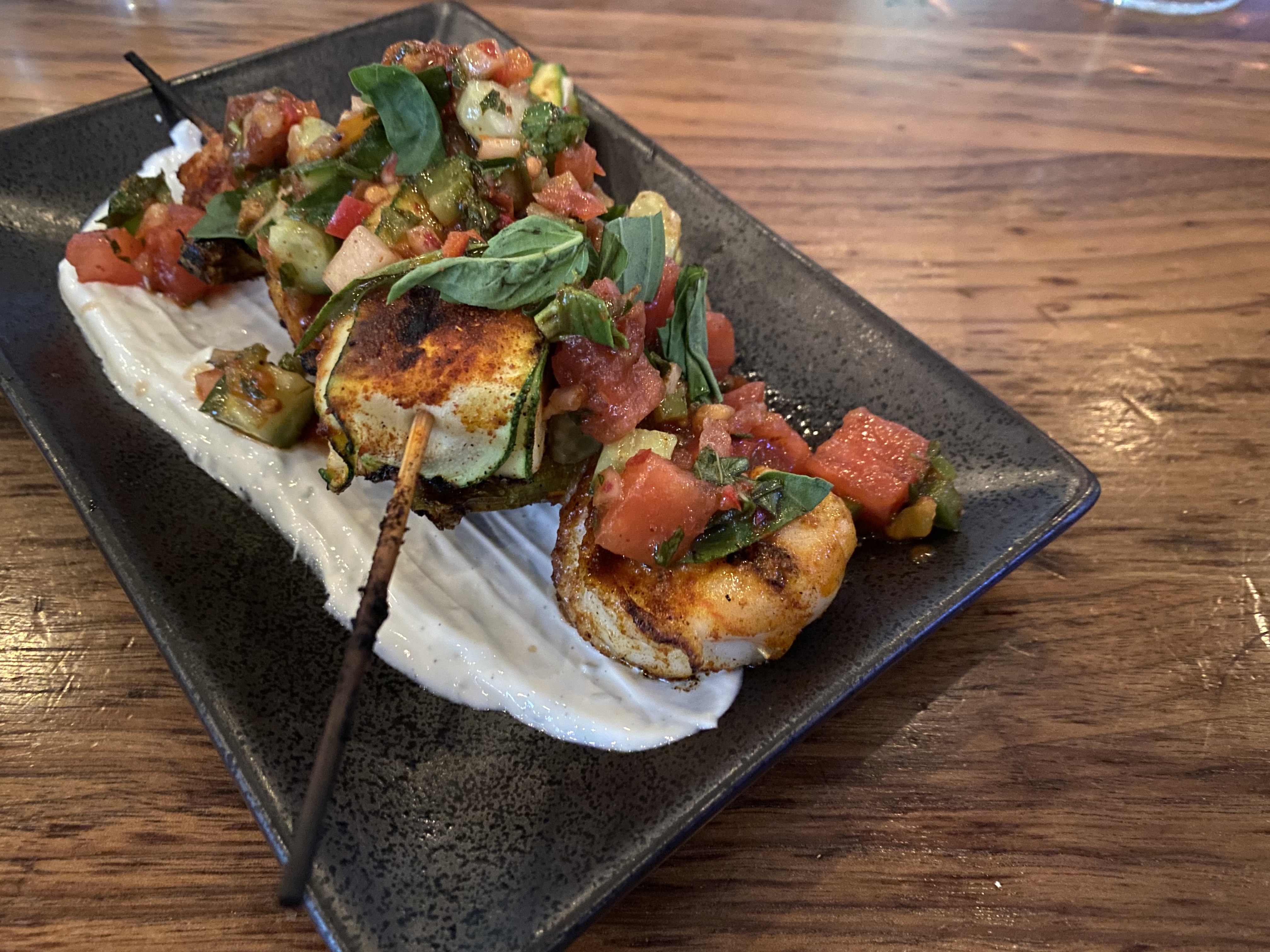 Next came the heavenly Blackened Shrimp, two incredible skewers, the first with four well seasoned shrimp and the second with four cucumber wrapped grilled haloumi. The best course of the meal, the skewers were quite different but compatible, brought together by a watermelon ezme. The richness of the cheese was once again tamed by the sweetness of the shrimp and the watermelon.