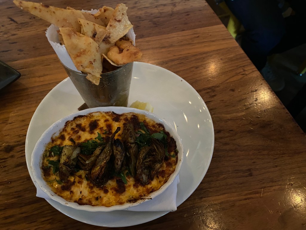 The last menu item was the Hot Crab Dip. I would have preferred it earlier in the meal, but I did enjoy the fried artichokes that topped it. Very cheesy and served with crispy pita chips, it is a very good version of crab dip.