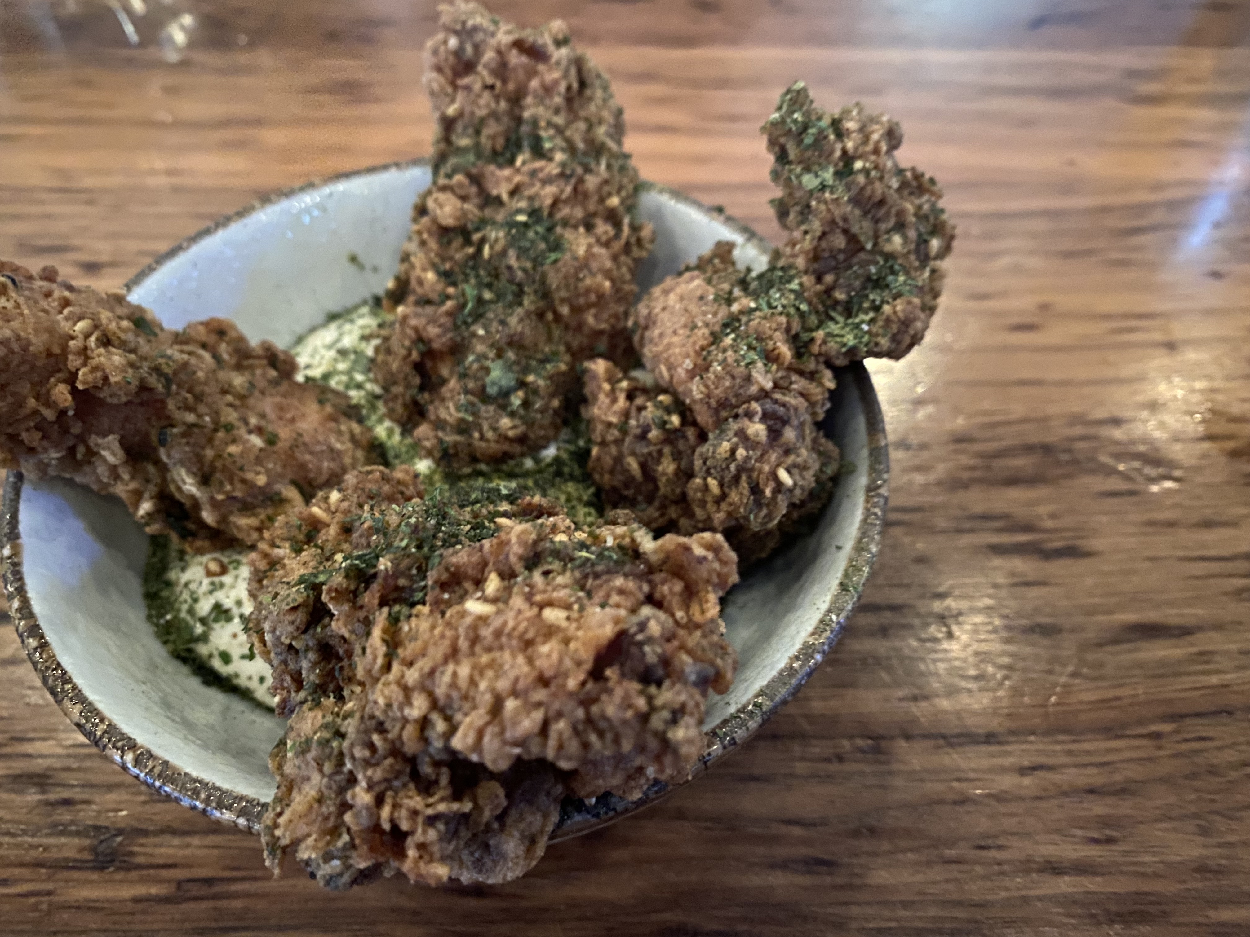 I went to Sarma years ago, long before the pandemic. Back then the menu was small, and the service was like dim sum. Servers brought around big trays of food, offered it to your table, and marked a card when you picked it. It was a lot of fun, a unique experience. I don’t know if the pandemic killed it or if it went away before then, but I missed it. They still pass one dish, the sesame fried chicken, and of course we got that. Still, I wish there was more.