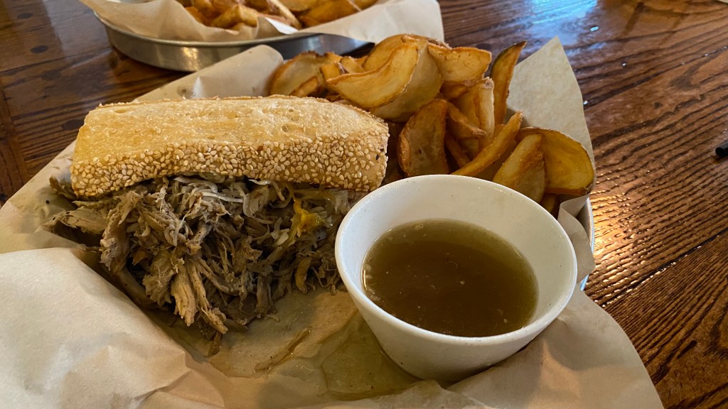 Nectar’s menu is enormous. With dishes ranging from Fried Green Tomatoes to a Donut Sandwich, it’s hard to decide what to get. The Tomato Hand Pie is a winner and so is the Duck Dip, a duck pastrami sandwich with cabbage and a duck jus dipping bowl. They serve breakfast until 4:00 so even if you want to sleep in on vacation, you can still get pancakes. Two years ago it was packed, but this year we were able to get it right away. Maybe it’s because the service here is a little uneven.