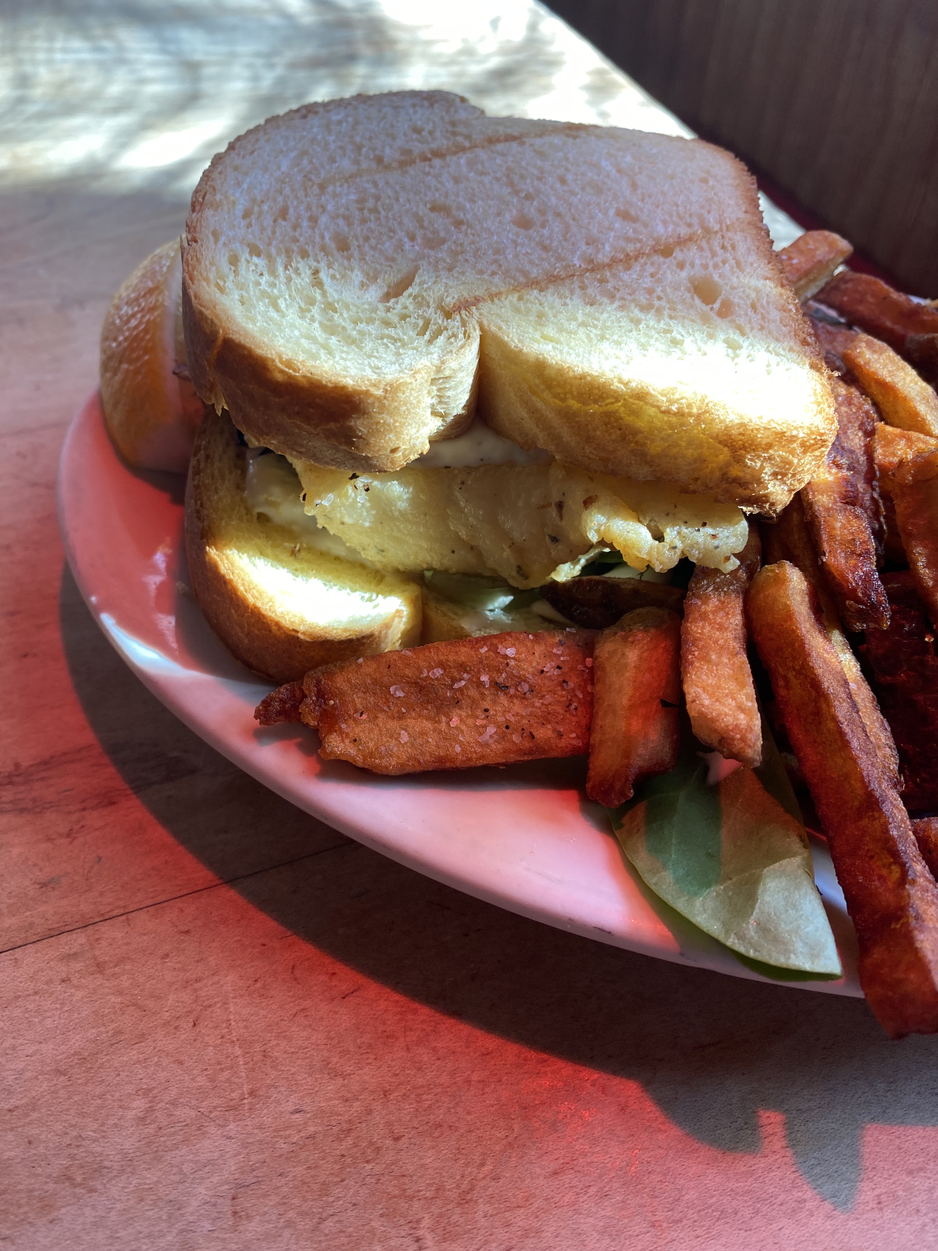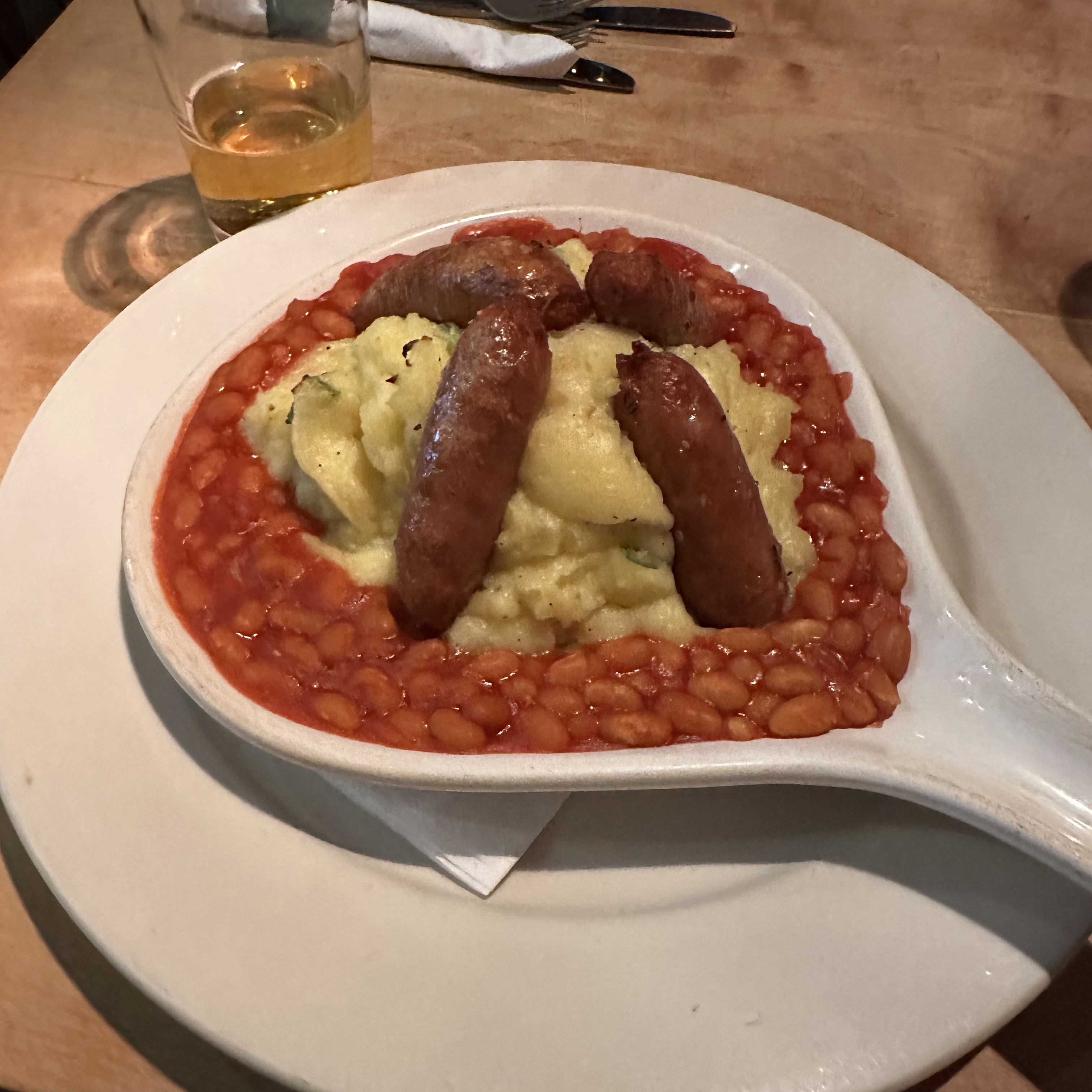 - Favorites include the Fish Sandwich and Sausage, Beans, and Mashed