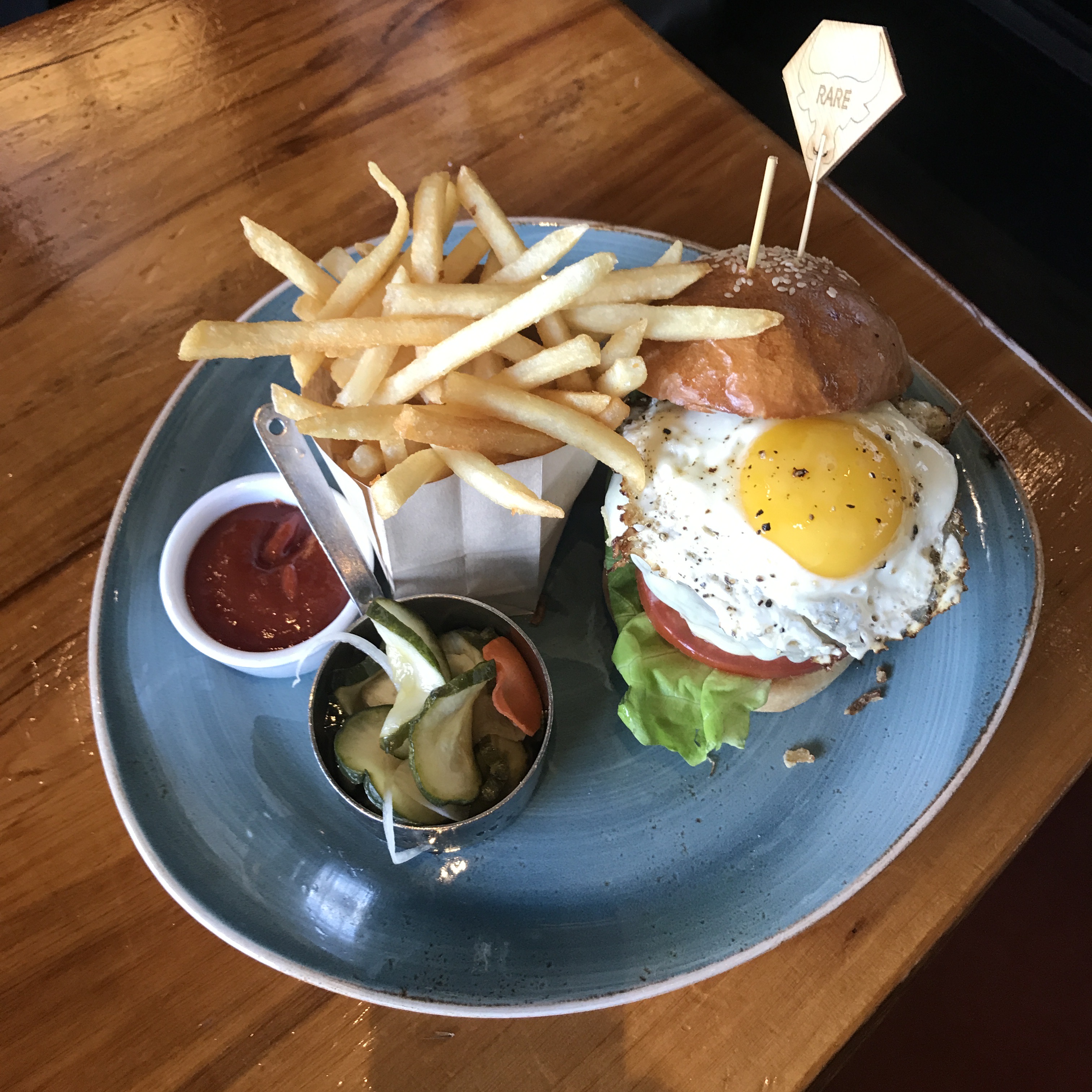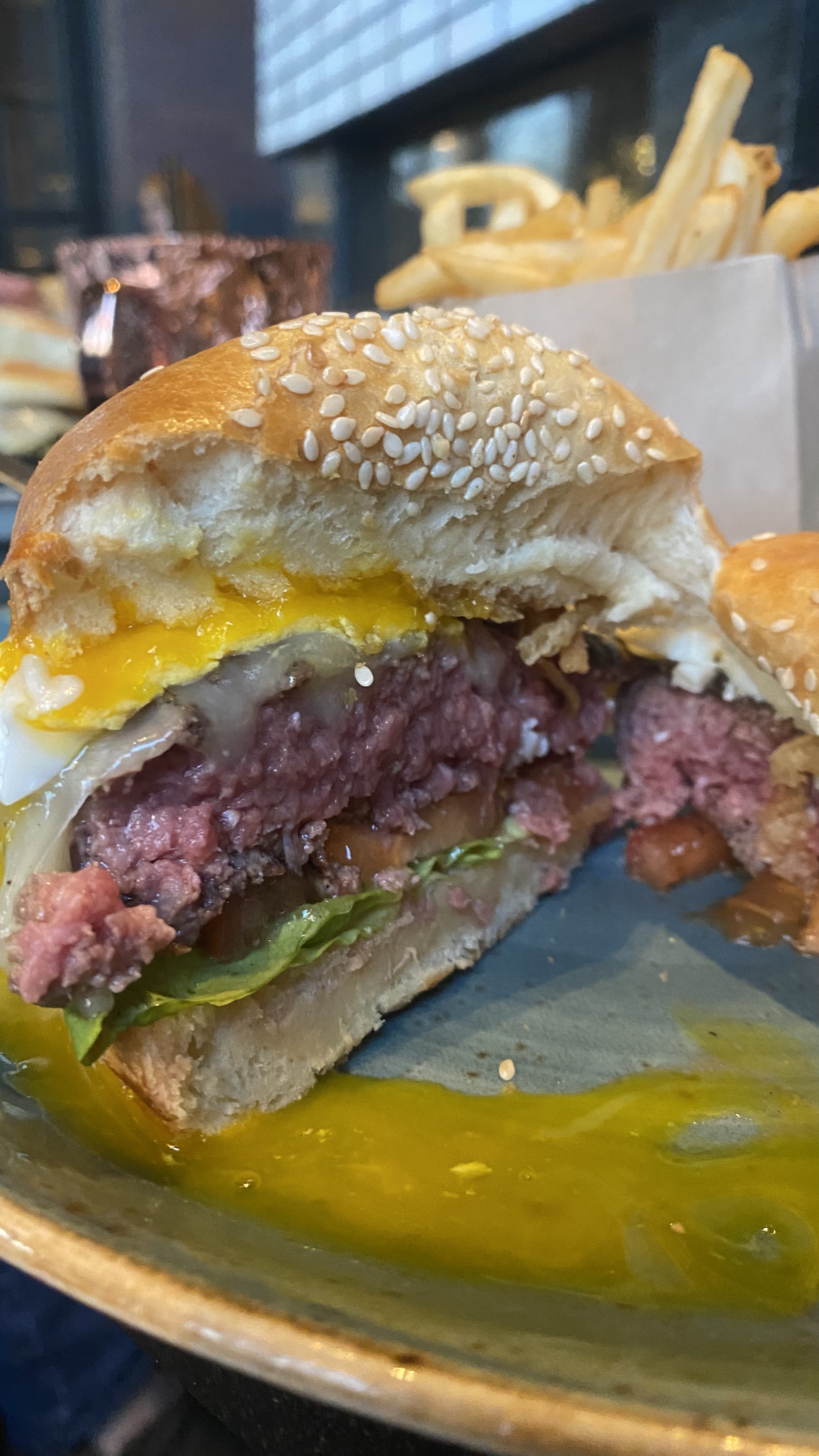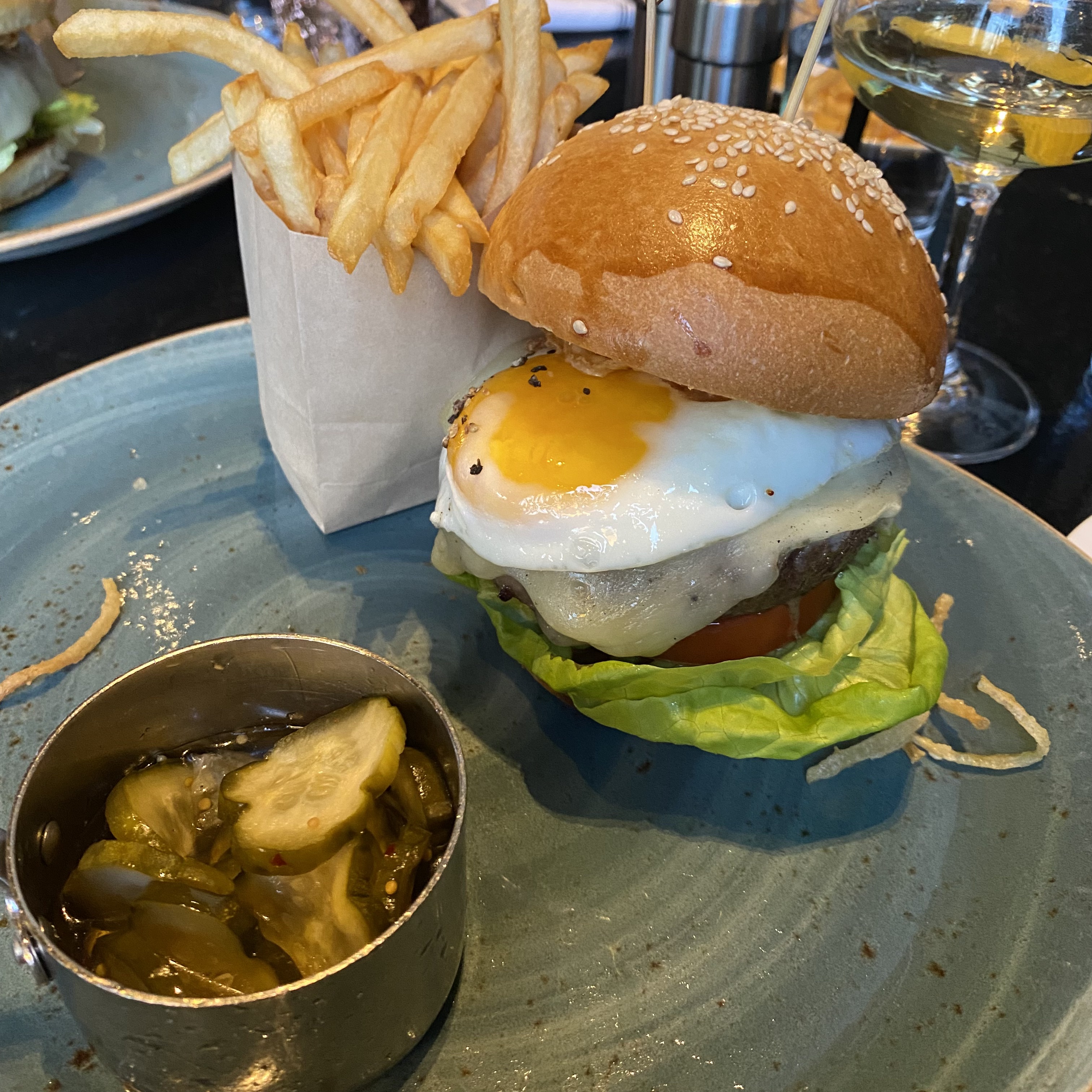 If I’m not getting steak tartare, I often go for the burger. It’s been named one of the best in Boston by lots of people, including me. It’s big and beefy, and even though it doesn’t say it on the menu, they will happily add a fried egg to it for you. It comes with pickles, great fries, and house-made ketchup. They have changed up what’s on top of it over the years, but most recently, mine had lettuce, tomato, cheddar cheese, and fried onion strings on a brioche bun. I order it rare and it’s always cooked beautifully.