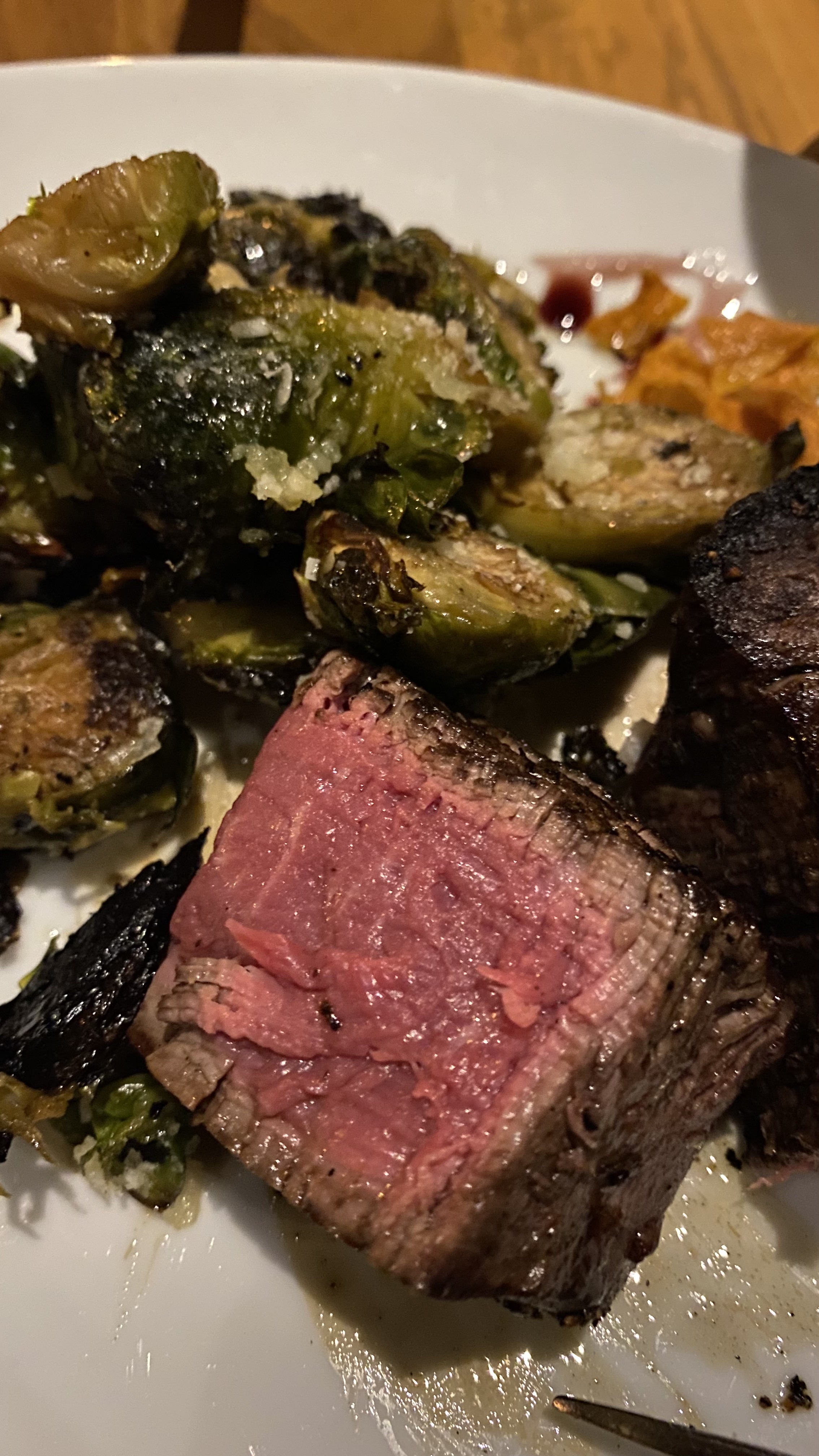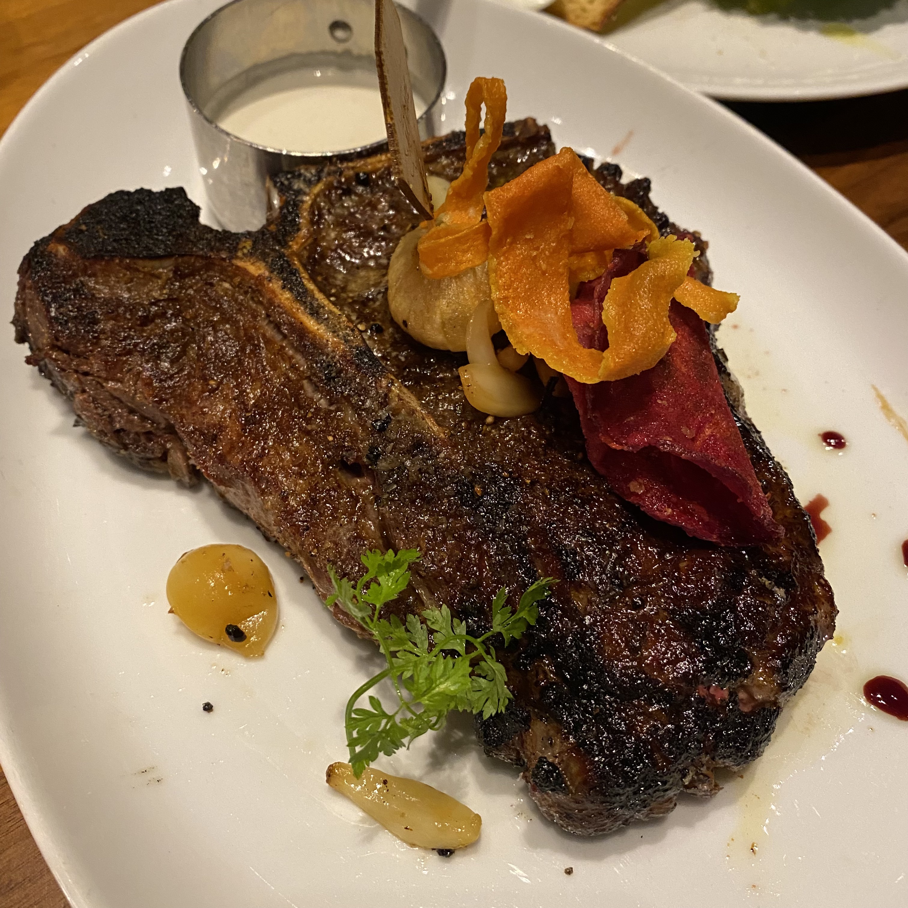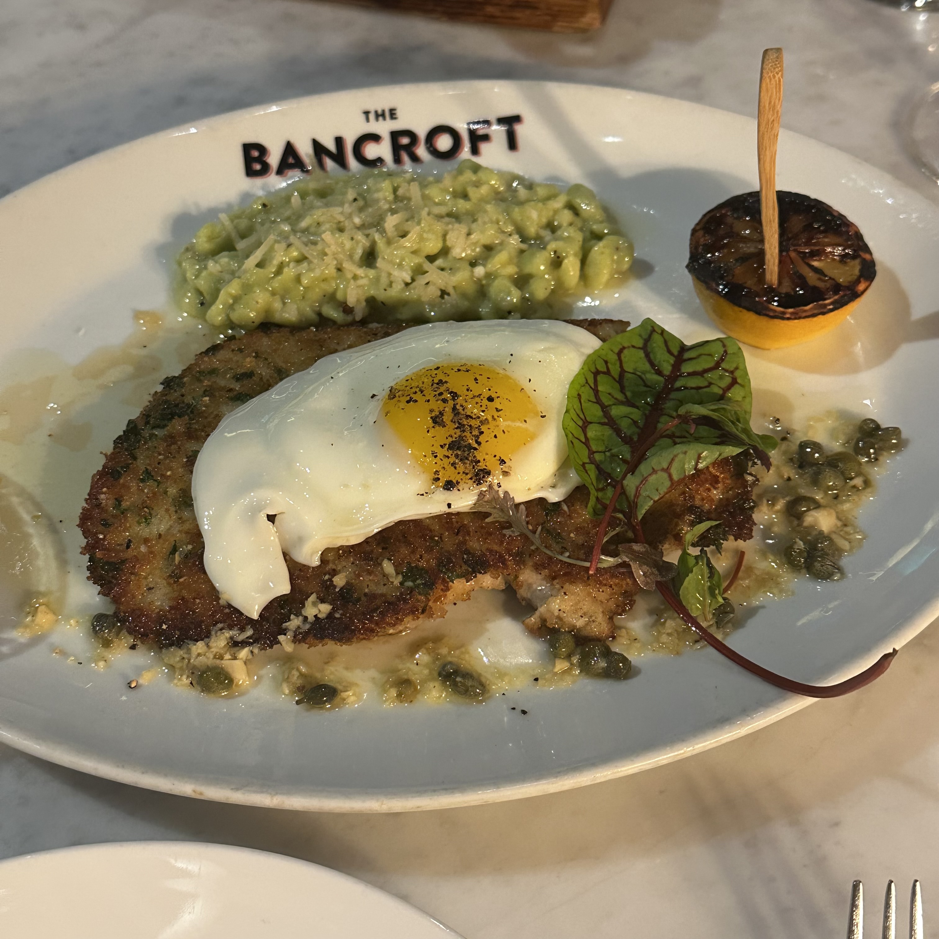 But of course you expect steak at a steakhouse. The Bancroft has great options for steak. The 24 oz. Prime T-Bone is great for sharing, and the best value on the menu. Or if you are hungrier, you can get the 40 oz Bone-in Tomahawk Rib Steak. They also have the classics, a filet, a rib eye, and a New York. The sides change frequently, but I’m partial to their very good creamed spinach. It’s topped with a fried egg. When on the menu, their spicy green beans are excellent as well, and I often get the brussels sprouts. Or you can just get a bag of fries. Since this is the third time we’ve mentioned them, you know the fries are delicious.