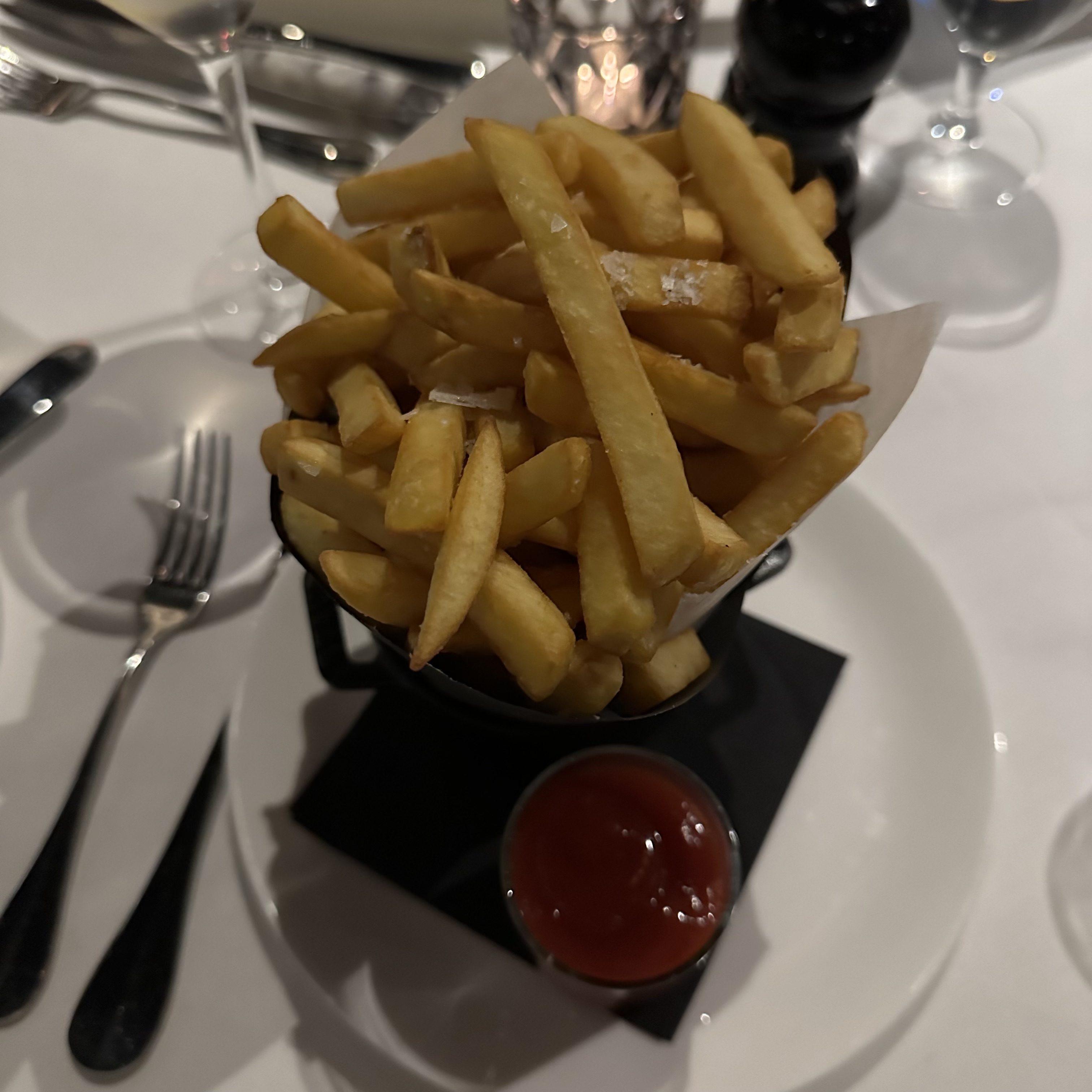 For dessert my wife and I shared a little plate of Christmas chocolates. The one with the red crown on it had raspberry inside and was amazing!