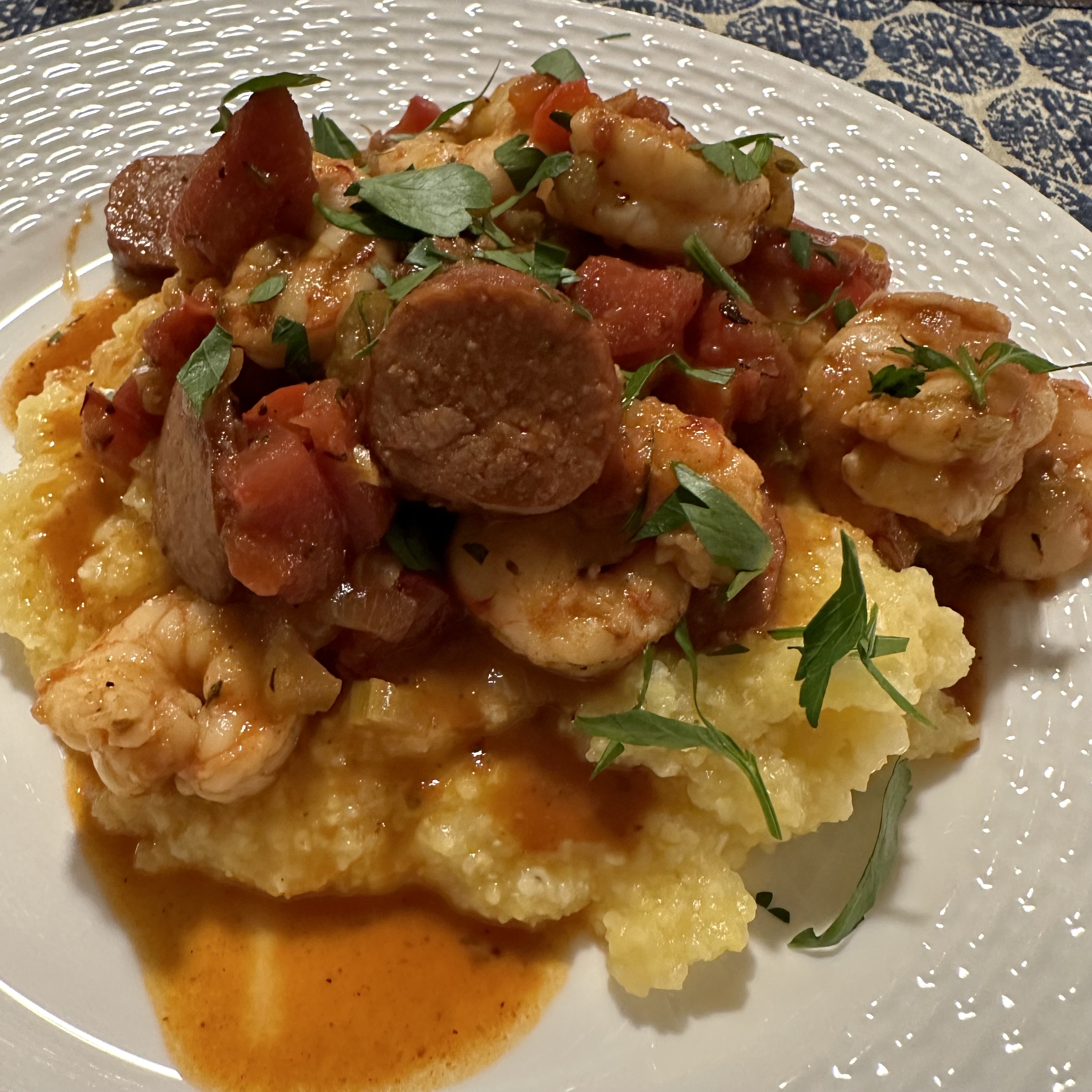 So I saw this method for cooking polenta on Jacques Pepin’s Instagram. It looked really easy and I wanted to try it, but I rarely eat polenta and I couldn’t figure out what I was going to do with it once I made it. I was close to making short ribs, which is always delicious. But I’ve been getting these emails from Brennan’s about ordering a king cake for Mardi Gras, and then I ate some bananas foster at Mooo…. and felt New Orleans calling.