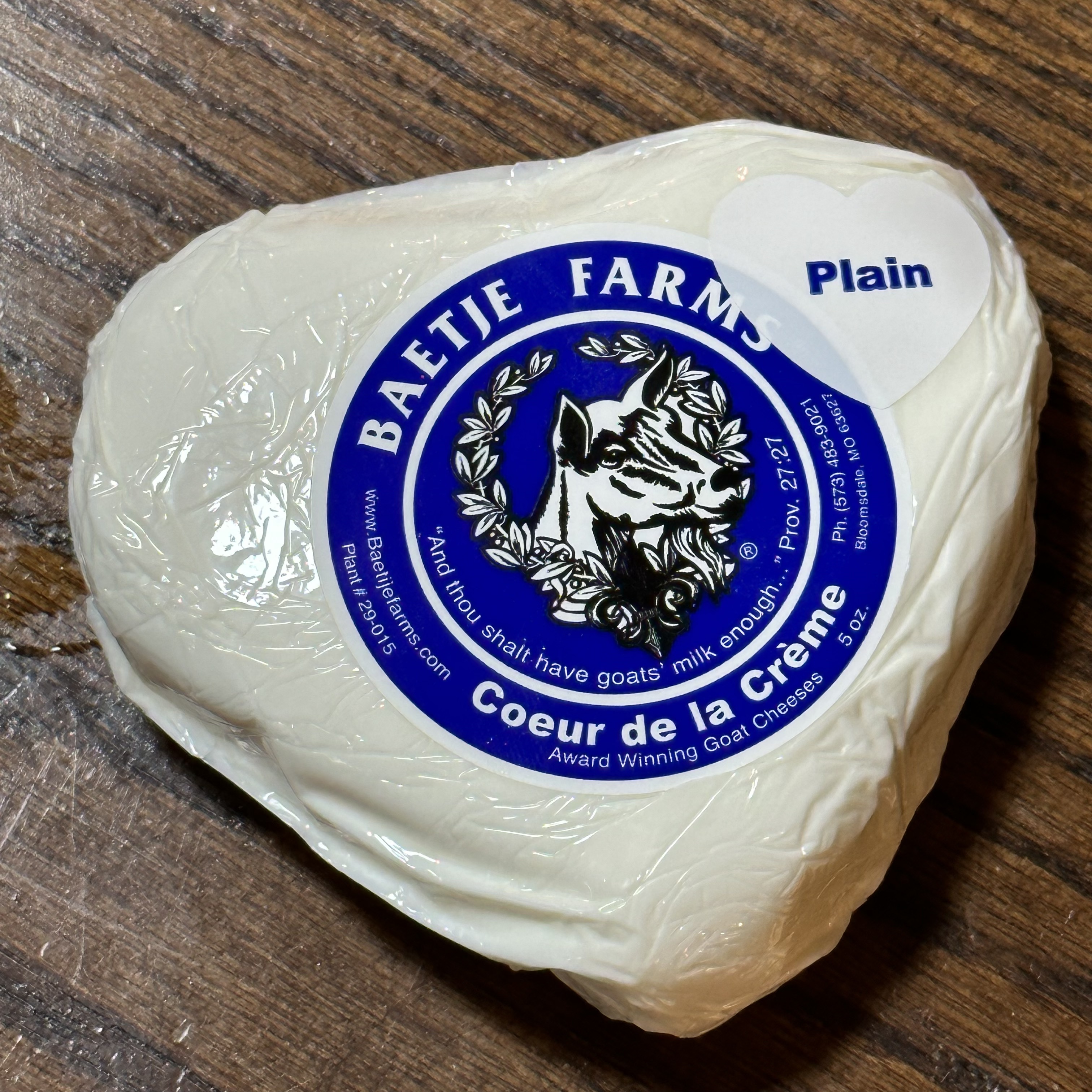 I was visiting St. Louis and wanted to pick up a couple of pieces of cheese to have before dinner. As I glanced over the cheese case, I asked the woman behind the counter if they had any Missouri cheese. She pointed me in the direction of two. The first I have been able to get back home, so I went with the second, Coeur de la Creme Plain from Baetje Farms in Bloomsdale, MO, about an hour south of St. Louis.