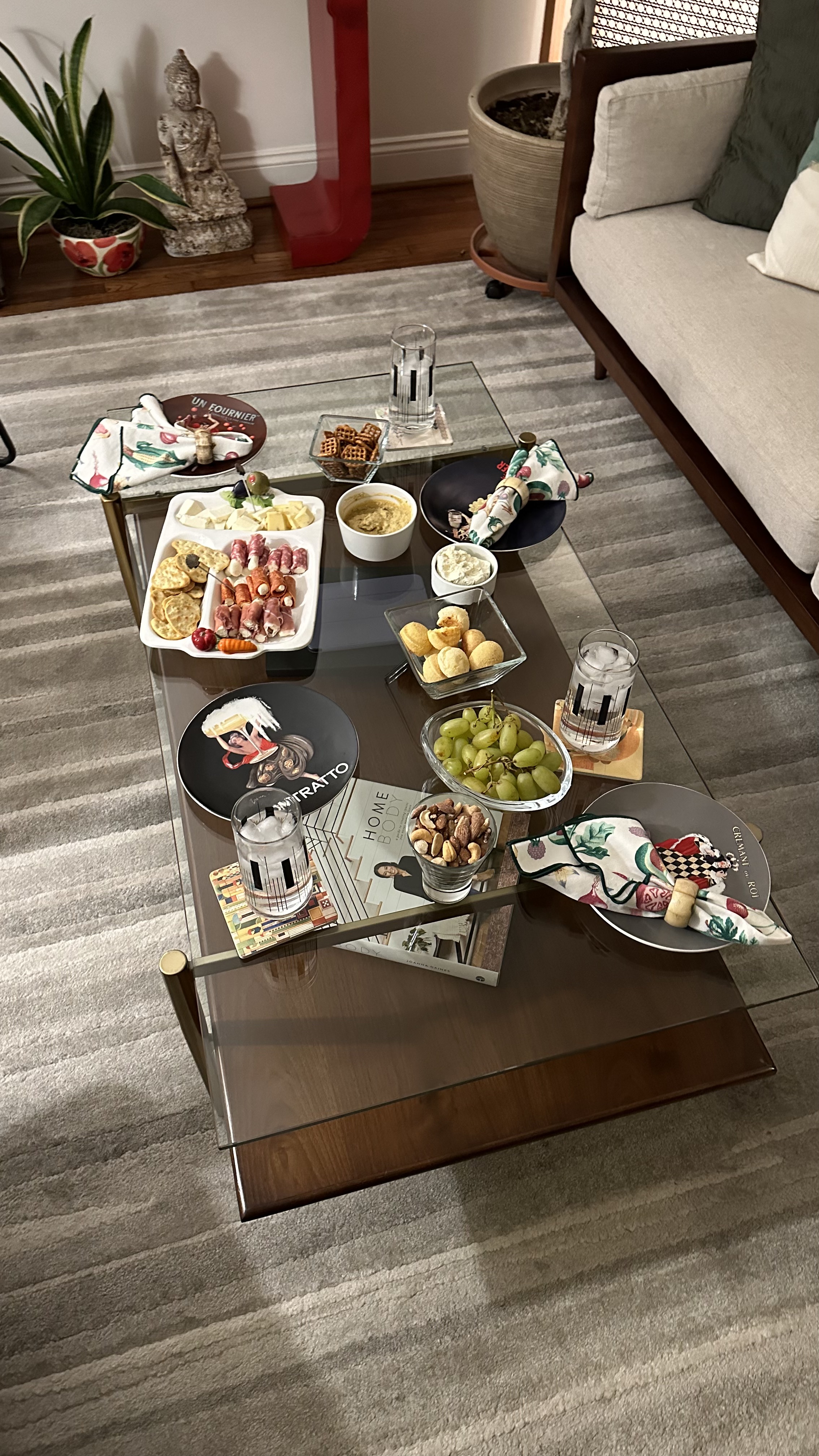 Dinner was a Brazilian feast. I might have eaten even more than I did Saturday night. We started with a charcuterie plate with a variety of meats and cheeses, Brazilian cheese bread, grapes, pretzels, and some dips. Then we added delicious Brazilian sausage with mustard. My dad made baked shrimp, a replication of a dish from my childhood that his grandmother used to make. And for our main course we had Brazilian chicken pie. I had a little too much of that because it was so good. Last but not least we had cheesecake and champagne. It was a huge meal but worth every bite.