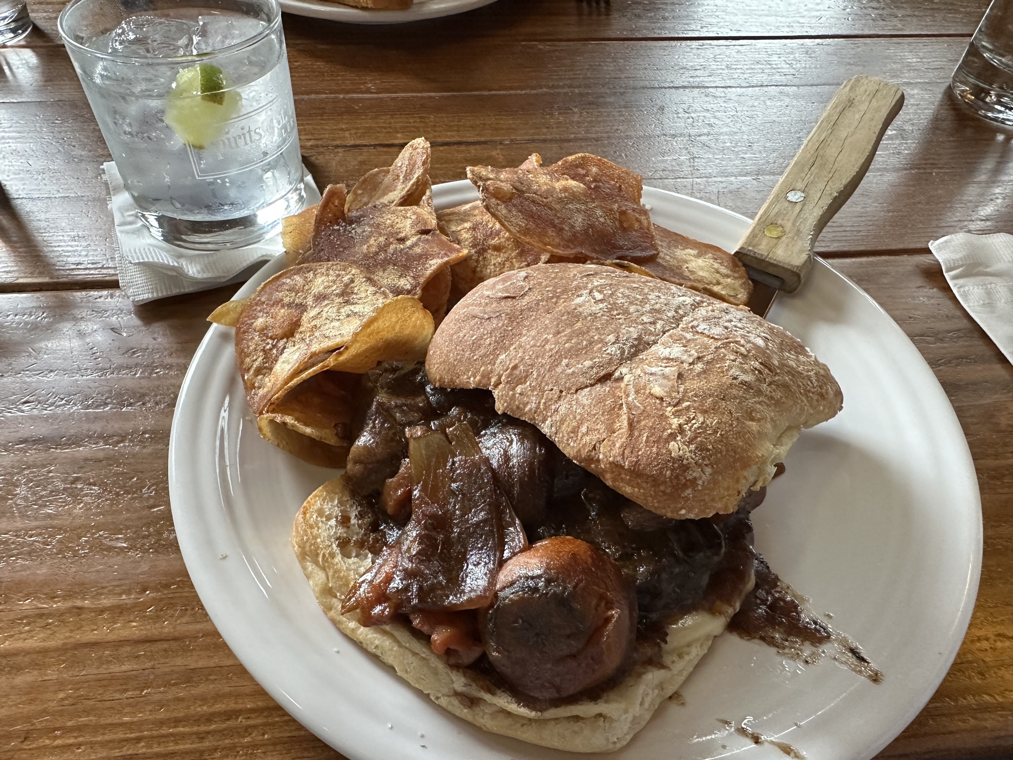 I’m feeling a little under the weather today. I had reservations for dinner but cancelled them. This morning I went to the City Museum in St. Louis with my parents and my son. He had a blast. It’s a wild place. After that we went to Lafayette Square and had lunch at Square One Brewery and Distillery. I got a gin and tonic with Regatta Bay Gin, gin no. 047. To eat I had a pot roast sandwich which was very good. It reminded me of my own pot roast. For a side I had pub chips which were a bit too salty.