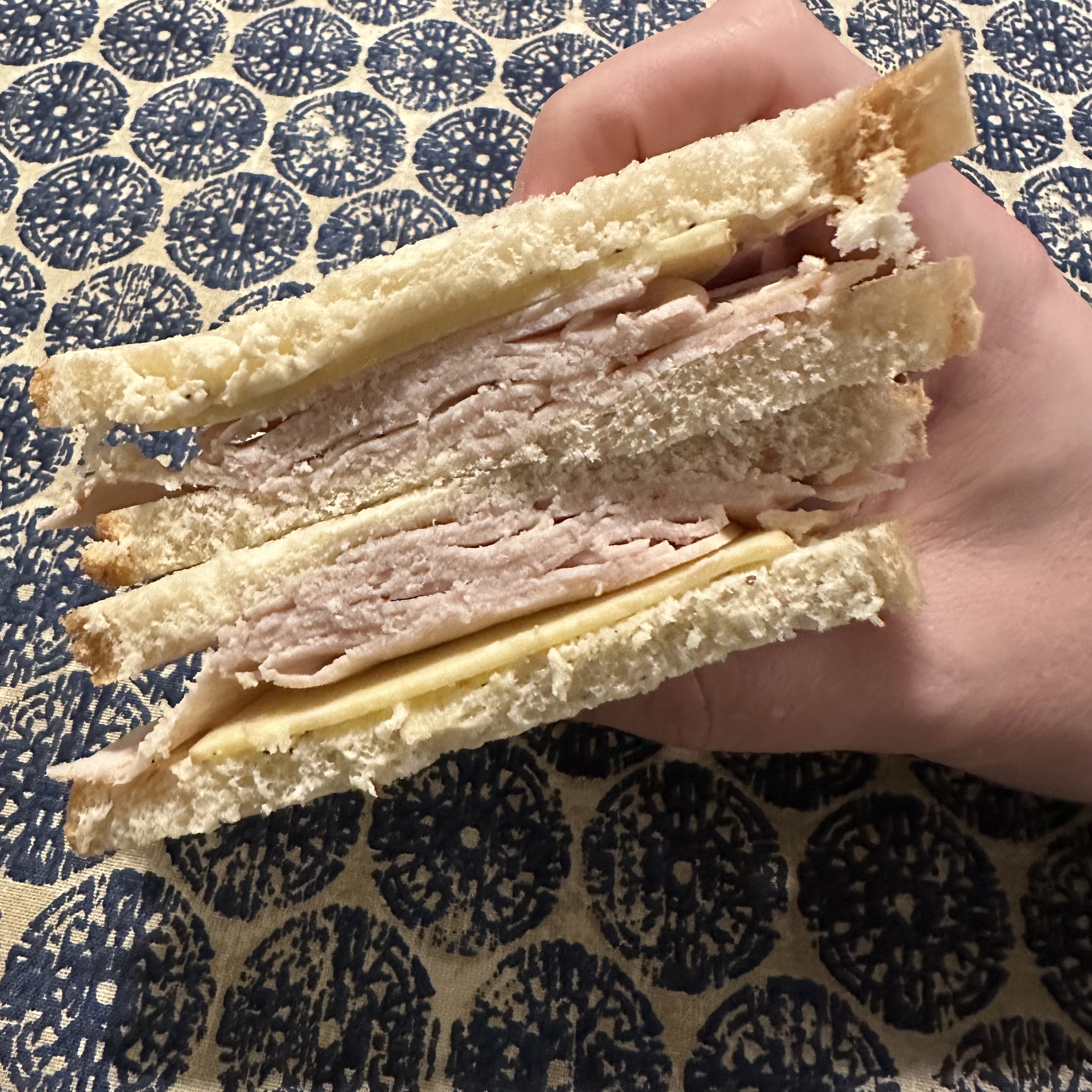 Back home and back to work. Despite not having dinner last night I wasn’t very hungry today. I had a busy day at work and ended up not eating anything. I stopped at the grocery store on the way home and picked up a few things. I had a sandwich with Ovengold turkey and smoked gouda. With it I finished off the pico I made last week along with some tortilla chips. For dessert I had the last pice of my Christmas fruit cake.