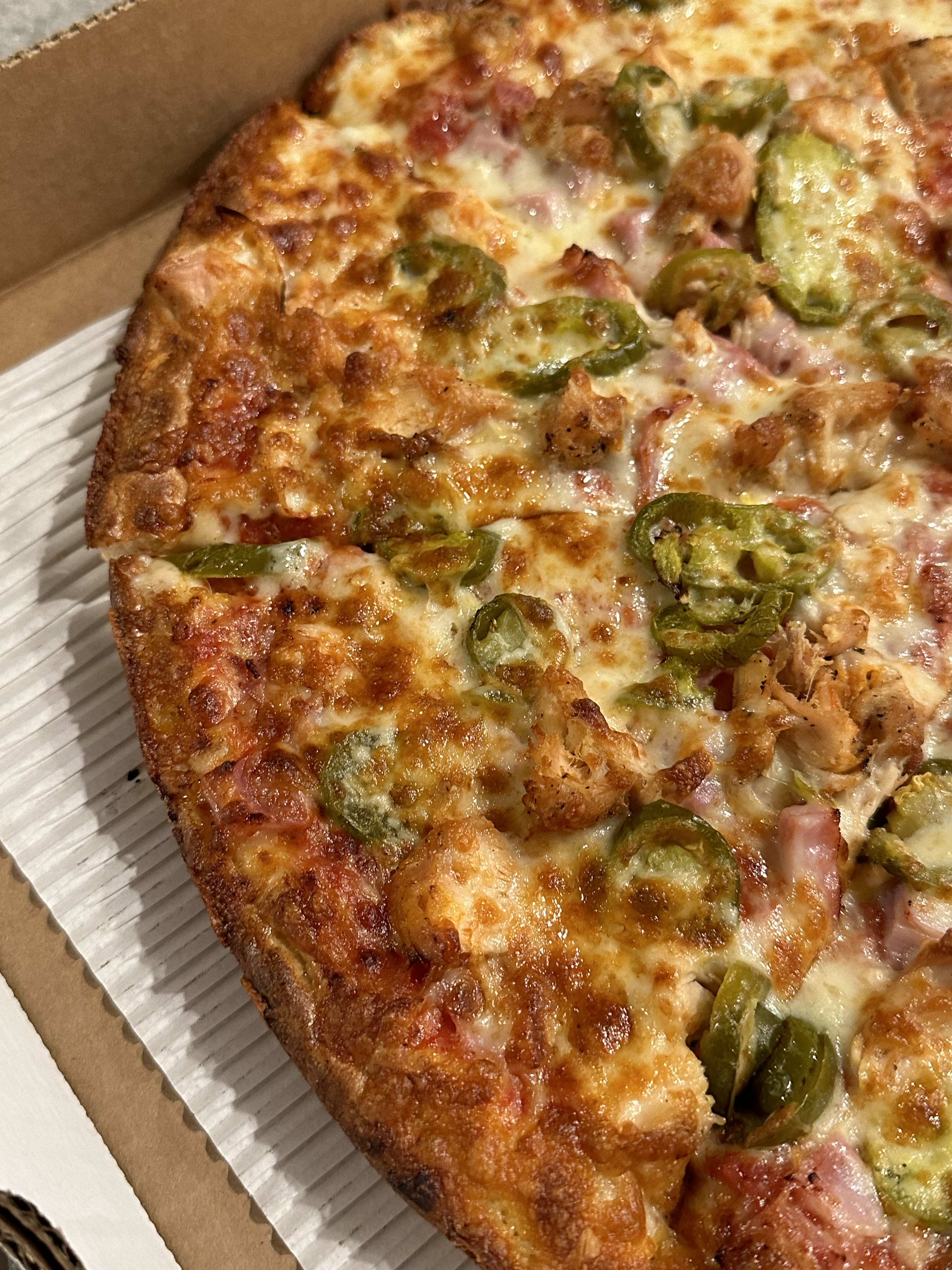 Last night’s Mexican food has my weight up this morning so I started the day with a bowl of cranberry-maple oatmeal. For dinner I got a pizza from New London. I guess that didn’t help my weight. One of our favorite topping combinations is grilled chicken, ham, and jalapenos and the one at New London is fantastic. Since I already ate more than I meant to for dinner, I had a pack of Chuckles for dessert.