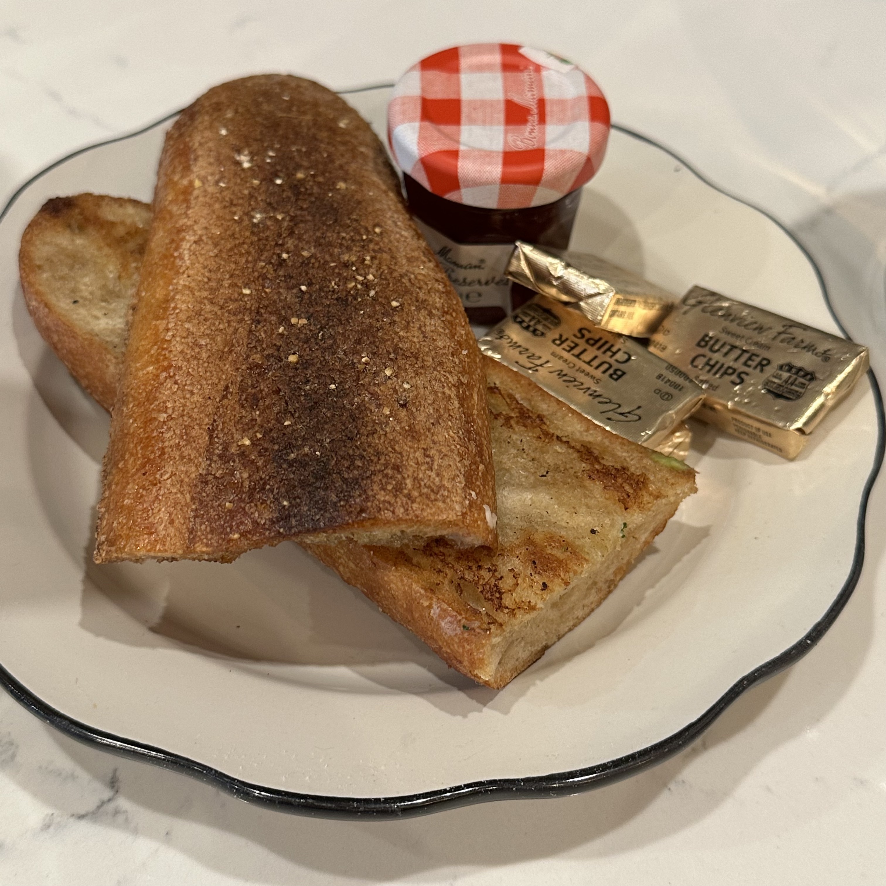 I’ve also had the banh mi, a not so traditional French sandwich and the onion soup, as traditional as it gets. Both were very good and worth getting again. Don’t skip their breads. They have croissants of course, but also banana bread and apple turnovers. My favorite however is their “Butter Tartines & Jam” which is just grilled baguette with butter and jam, but it’s so much better than the toast you get anywhere else.