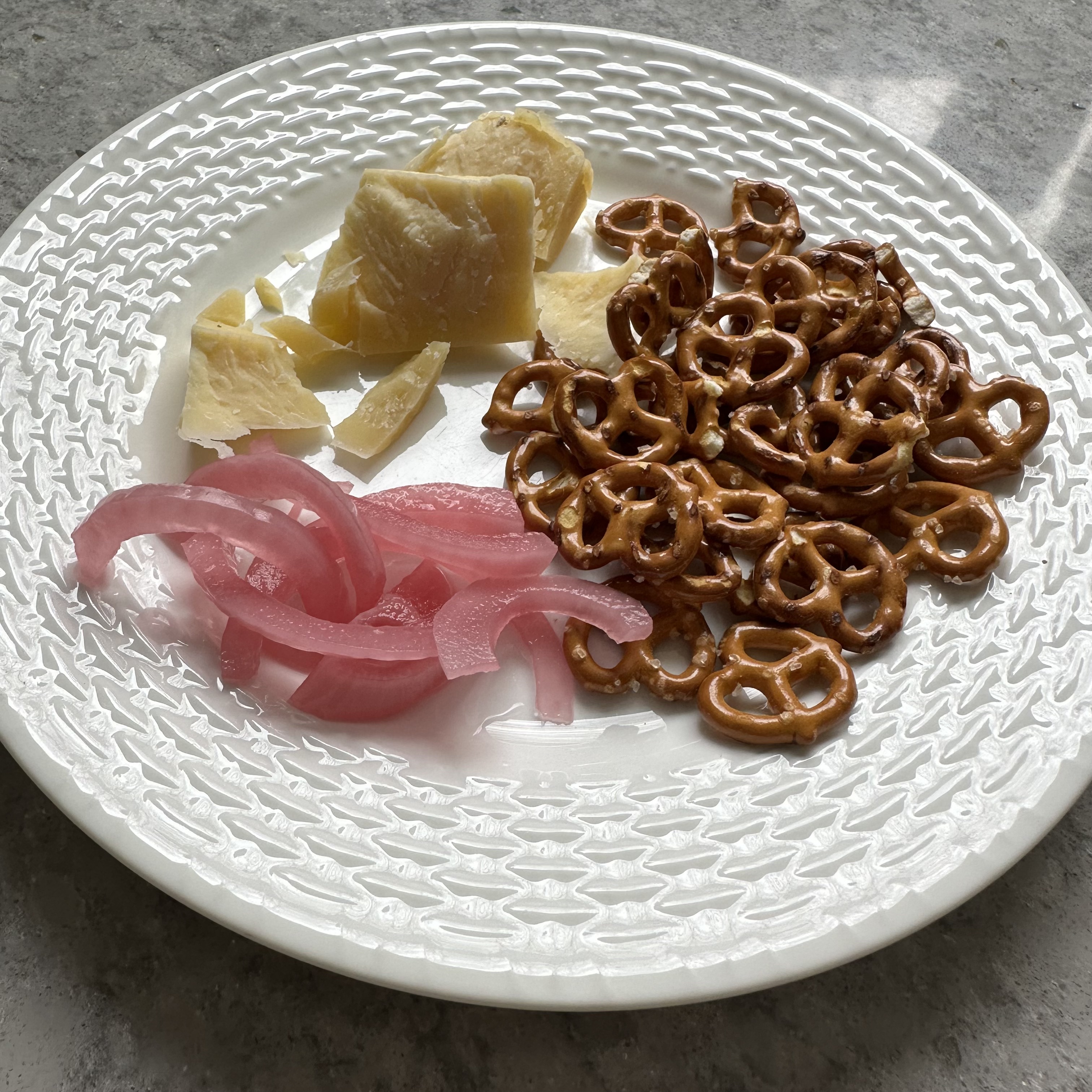 Happy St. Patrick’s Day! This morning my weight was way down. I was very happy with how well I did this week. Well I am sure I blew it today. But you have to. If you are good the rest of the time you can enjoy the special times. I had a scone at work this morning with butter and lemon-lime jelly. I’ve never seen lemon-lime jelly before, but I really enjoyed it and need to go find a jar. I came home early to start cooking and had a little cheese plate. Then my wife came home and was too hungry to wait for dinner so we had another cheese plate.