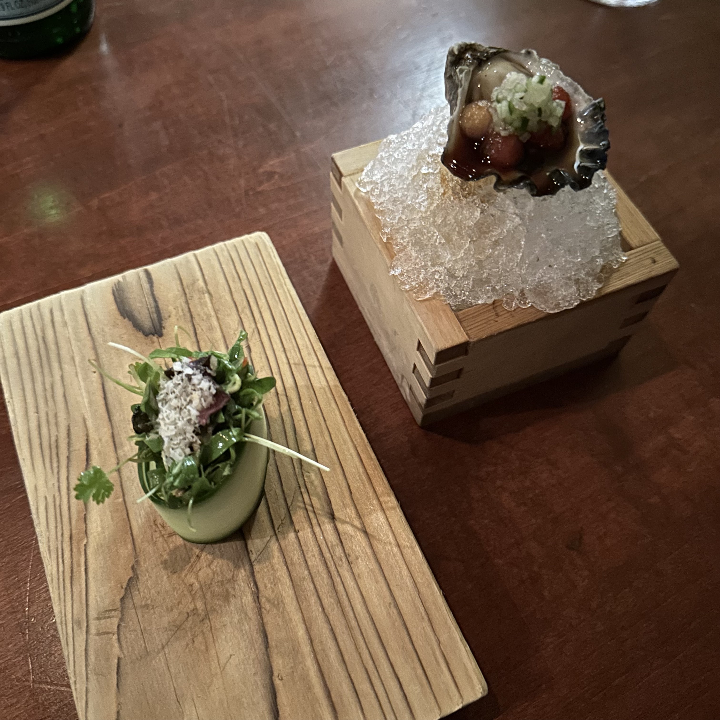 1. thai micro herbs, macadamia nut, cucumber – A replacement for a raw oyster, very flavorful and very good.