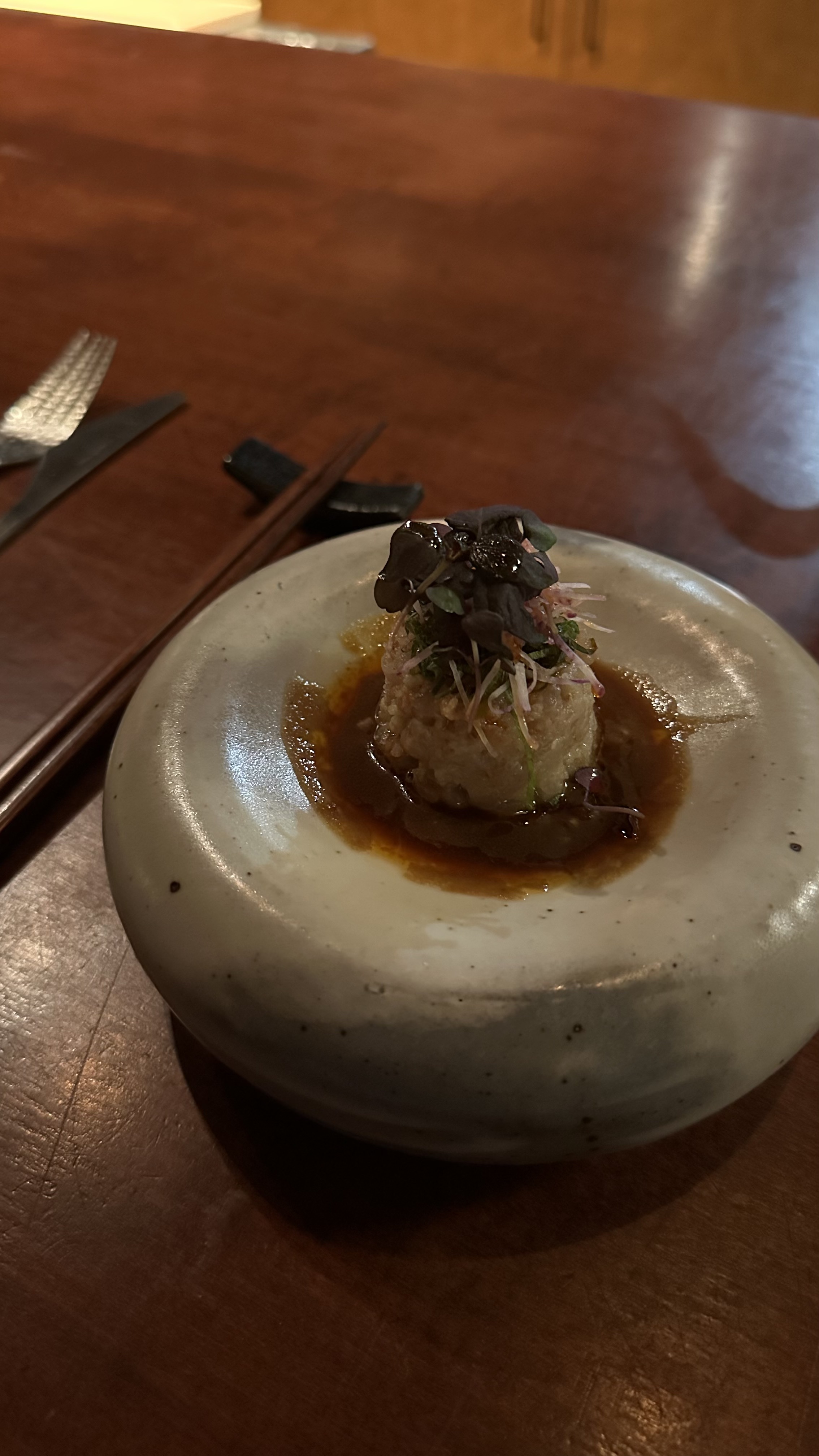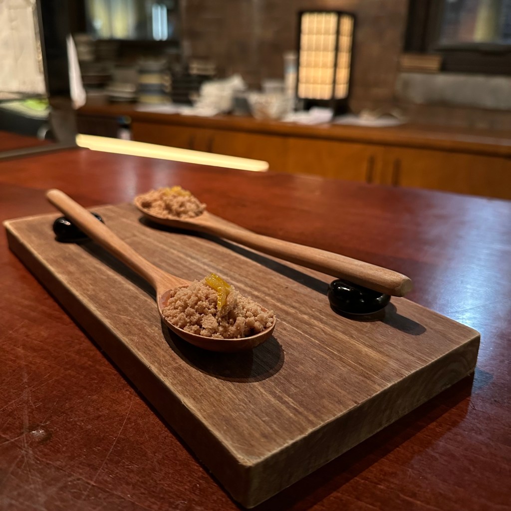 It’s also a challenge eating at o ya because I am allergic to raw shellfish. This means they had to sub out a number of courses. I also am not a big fan of mushrooms, sorry. There were also a few mushroom dominant courses on the menu. All that means that what is shown below, is likely to be quite different from what you would get if you went.