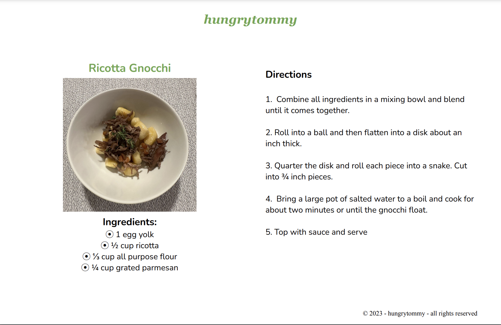 Until recently, I had not made gnocchi in years, but earlier this month I was hosting a birthday dinner for my wife and decided to make gnocchi with duck confit ragu. I actually did a practice run the week before and then made them again tonight. This recipe is surprisingly easy, and from the first try, they’ve come out just how I wanted. Ricotta gnocchi is faster and easier to make than potato gnocchi and to me it is lighter and more flavorful.