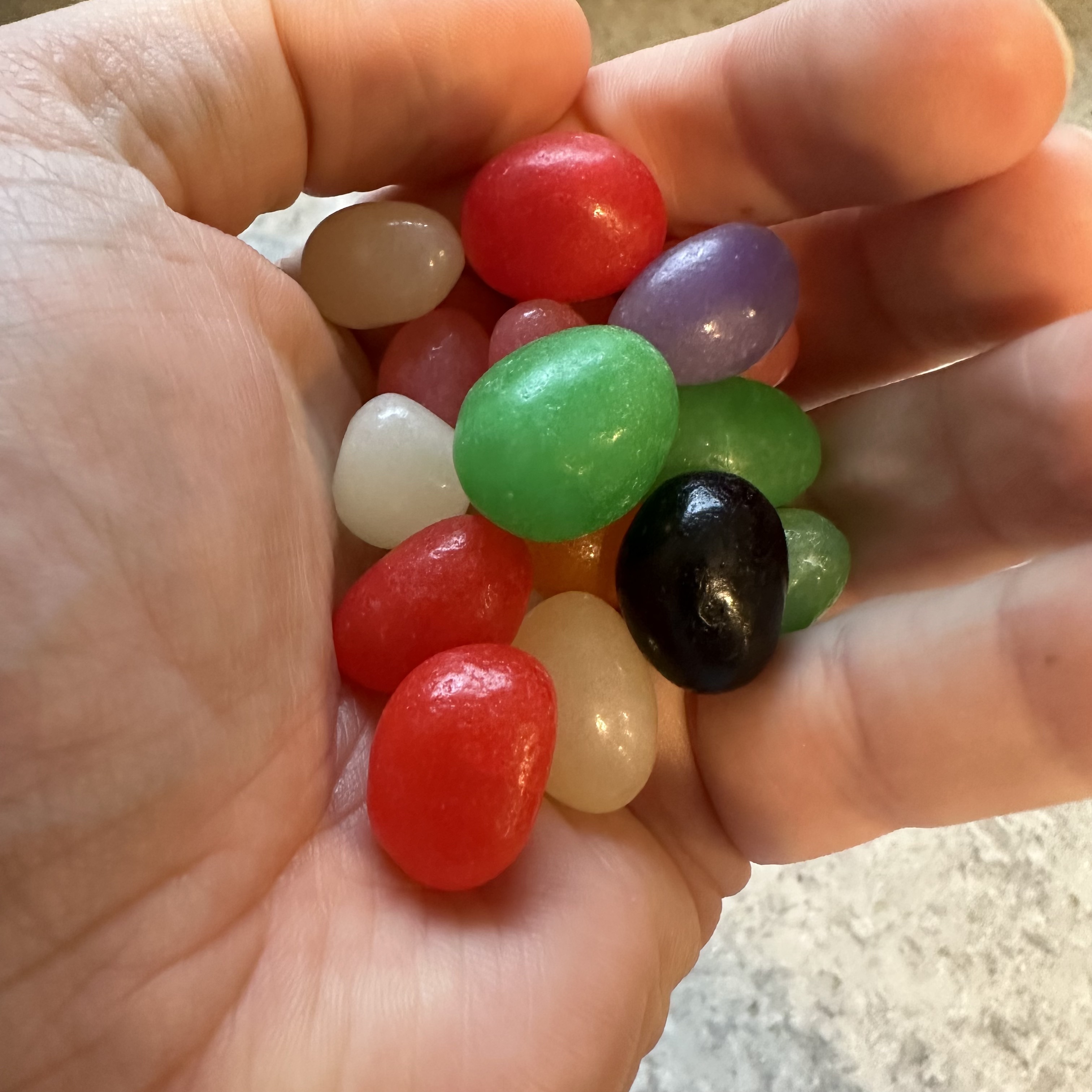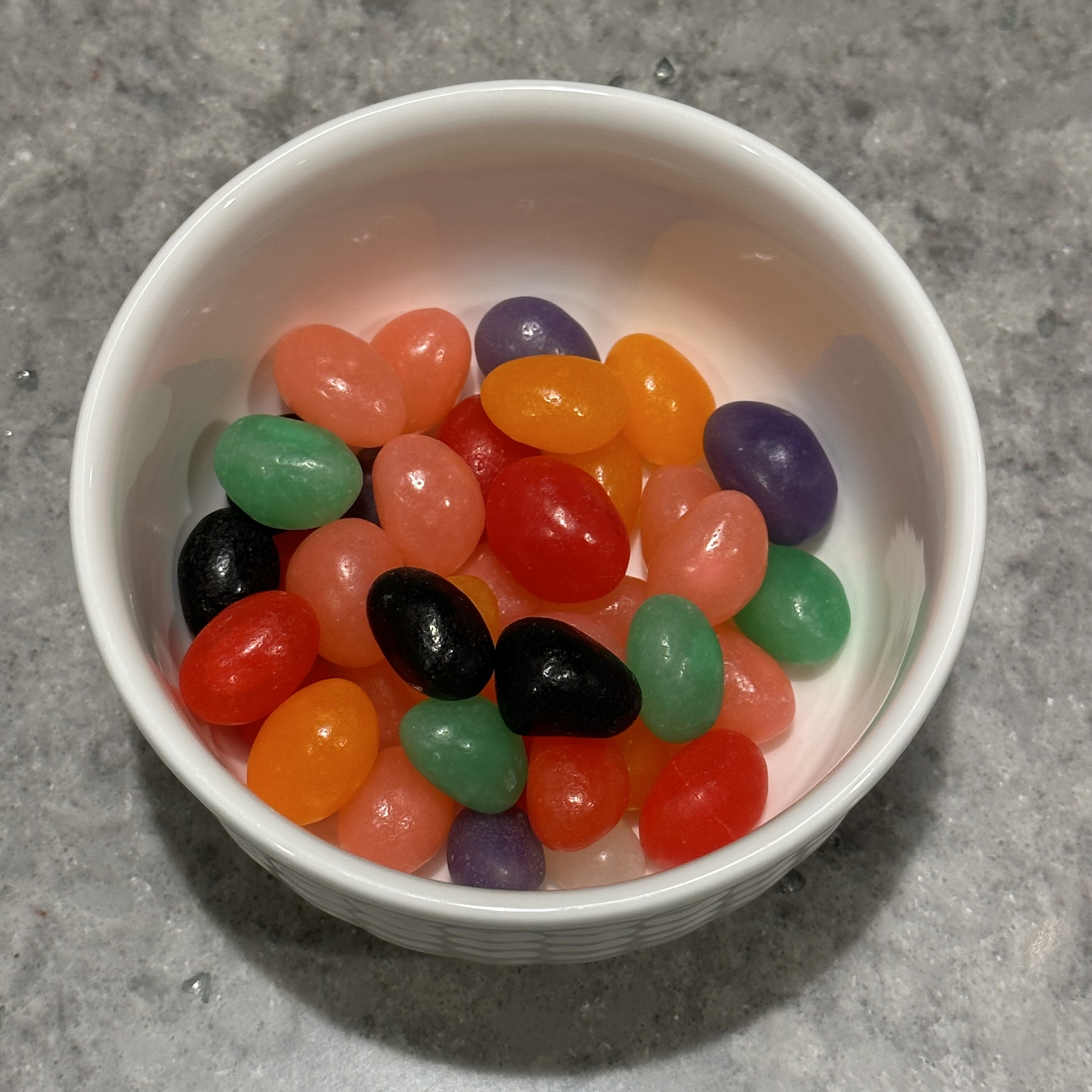 That really should have been enough food for a day, but I did have dinner. I got some rosemary ham and made a ham sandwich. After that I broke into the spiced jelly beans. I’ll have to eat light tomorrow.