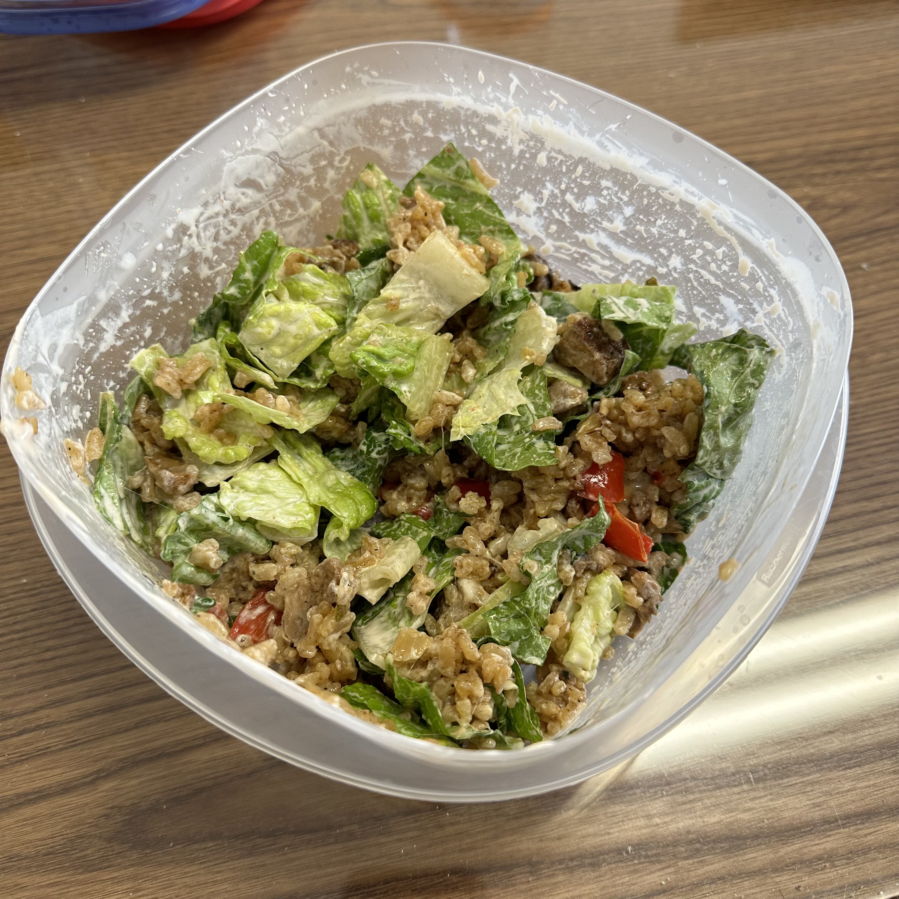 Still trying to be good, I took the rest of the chicken and rice for lunch. Today I mixed it with some romaine lettuce and dressed it with a combination of sour cream and hot sauce. Pretty good. For dinner we went to Bedford House of Roast Beef. I made the mistake of not getting roast beef. I got the cheeseburger club, which I don’t recommend. It isn’t club style except that it has bacon, lettuce, tomato, and mayo on it. It comes on a bun. It wasn’t horrible, but the burger was way overcooked. The fries were great as always and the coleslaw was actually really good. The worst part though was that they seemed to have changed their horseradish cream sauce, very, very dark news. I was cheered up slightly by the maple chocolate my wife gave me before bed.