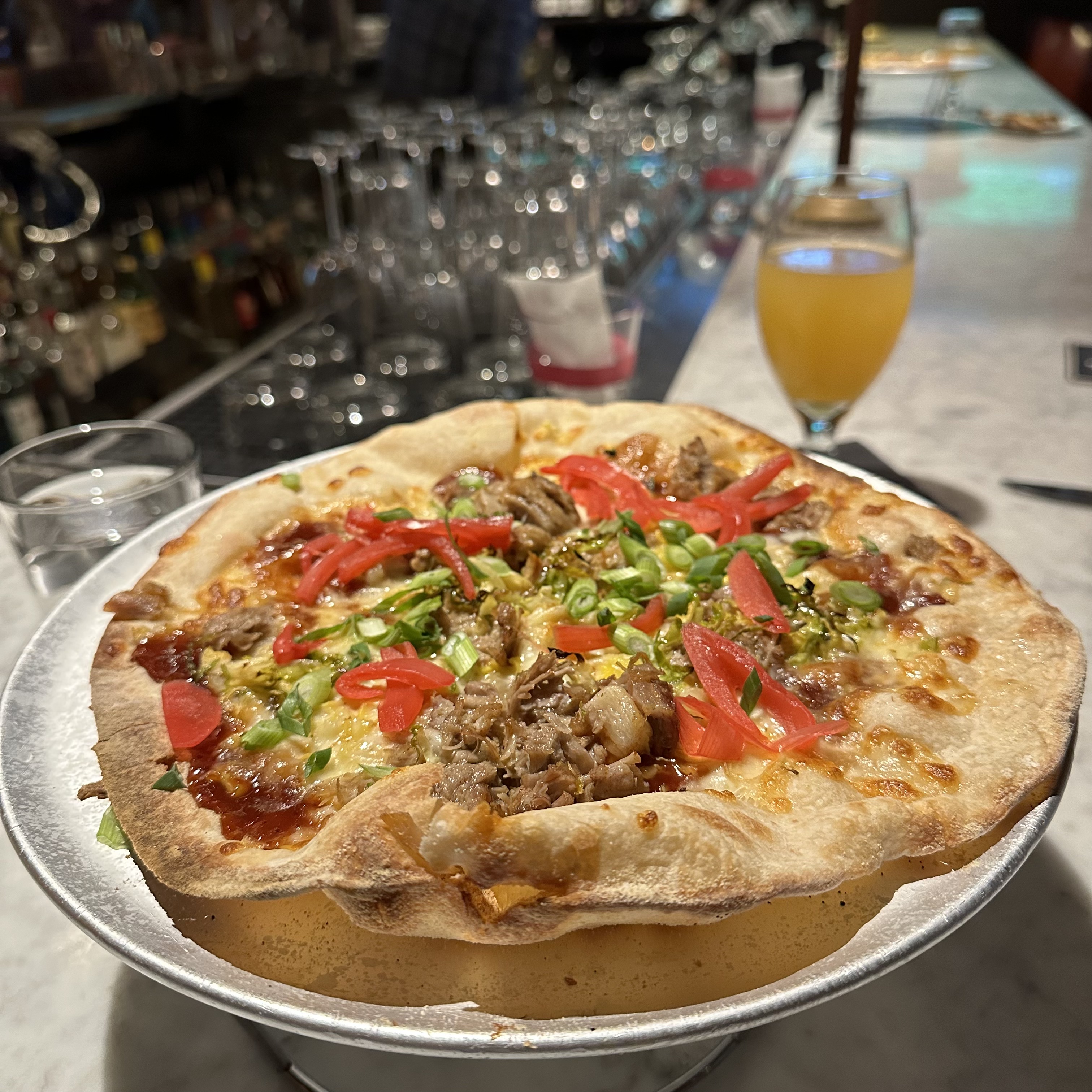 My mom arrived in town today for Easter. I picked her up from the airport and we headed to Harvard Square as we usually do for lunch. We settled on Russell House Tavern, which we have been to a couple times before and I have been to often. We got the Brussels House Pizza with bbq pork, shaved brussels, pickled onions, and scallions. We enjoyed it along with a Downeast Cider.