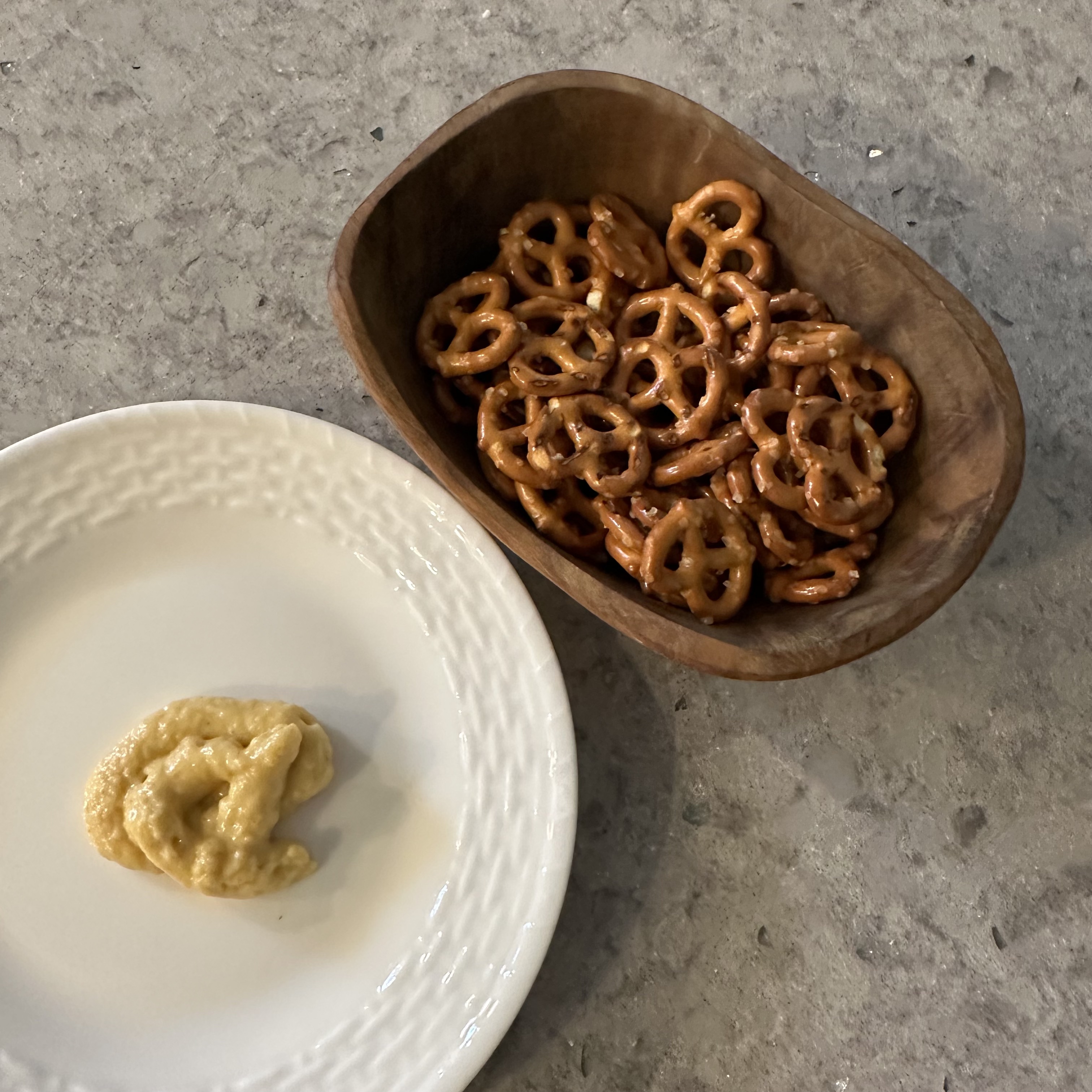 I was very snacky today so when we got back to my house, I finished the rest of the spiced jelly beans and then had some mini pretzels dipped in mustard.
