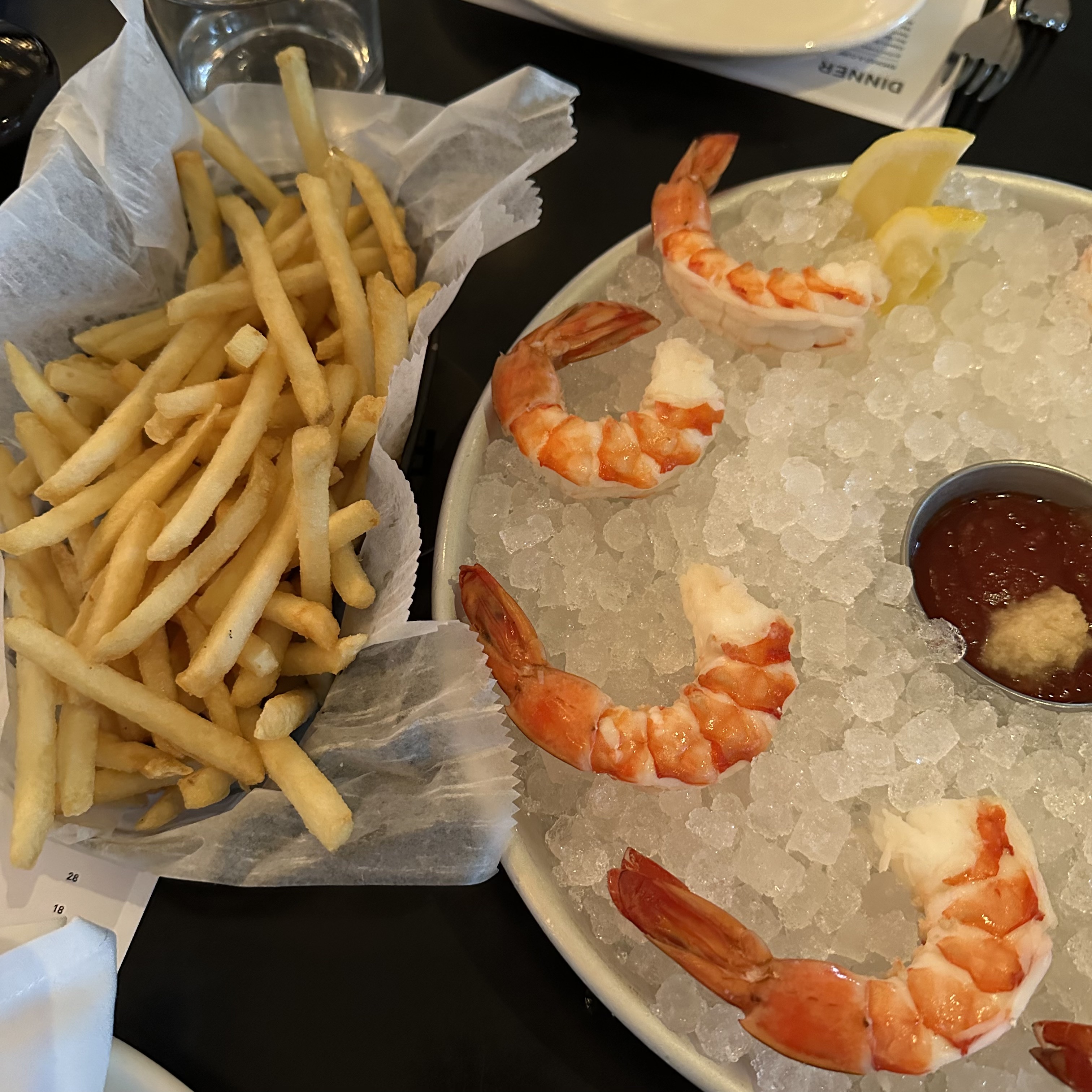 For dinner we went to Row 34. We had an amazing dinner the last time we were there. Tonight it was more like it used to be, good but lacking. Of course the shrimp cocktail and fries were great, but I had the salmon for my main course and it was just ok. The asparagus and the salmon were both overcooked.