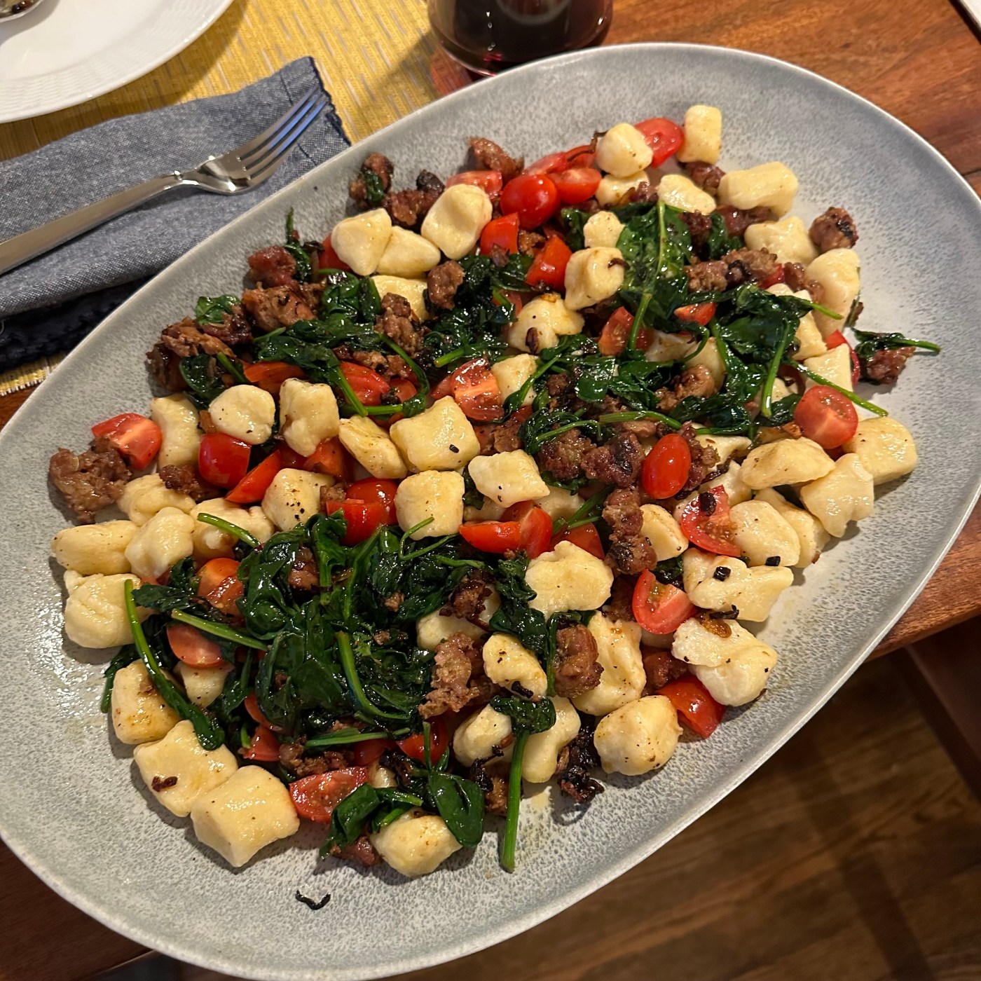 For dinner, at mom’s request, I made ricotta gnocchi. I tossed it with Italian sausage, shallot, spinach, and tomatoes. It was delicious. We also had a baguette from Bread Obsession and some Normandie butter, both of which I picked up at the Concord Cheese Shop.