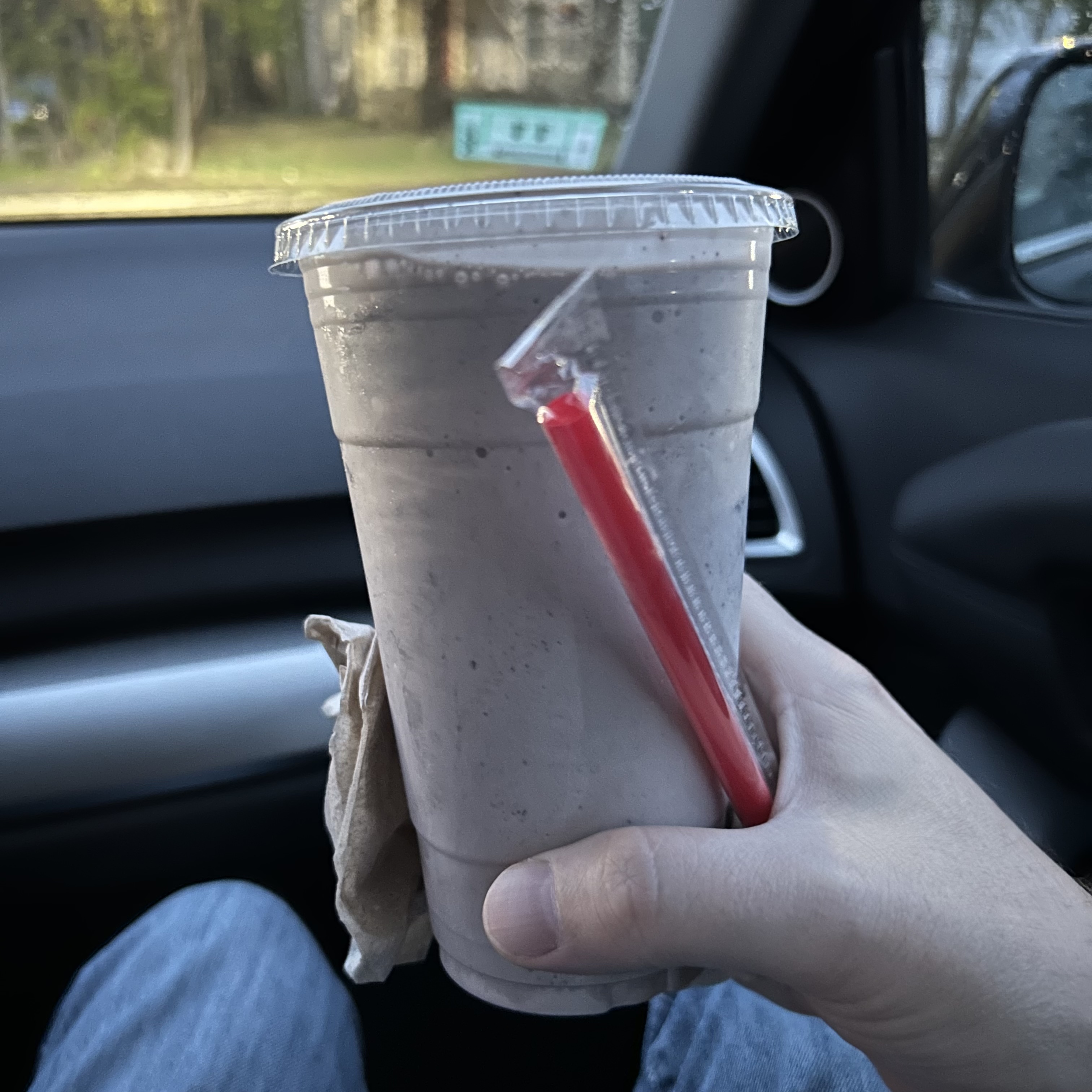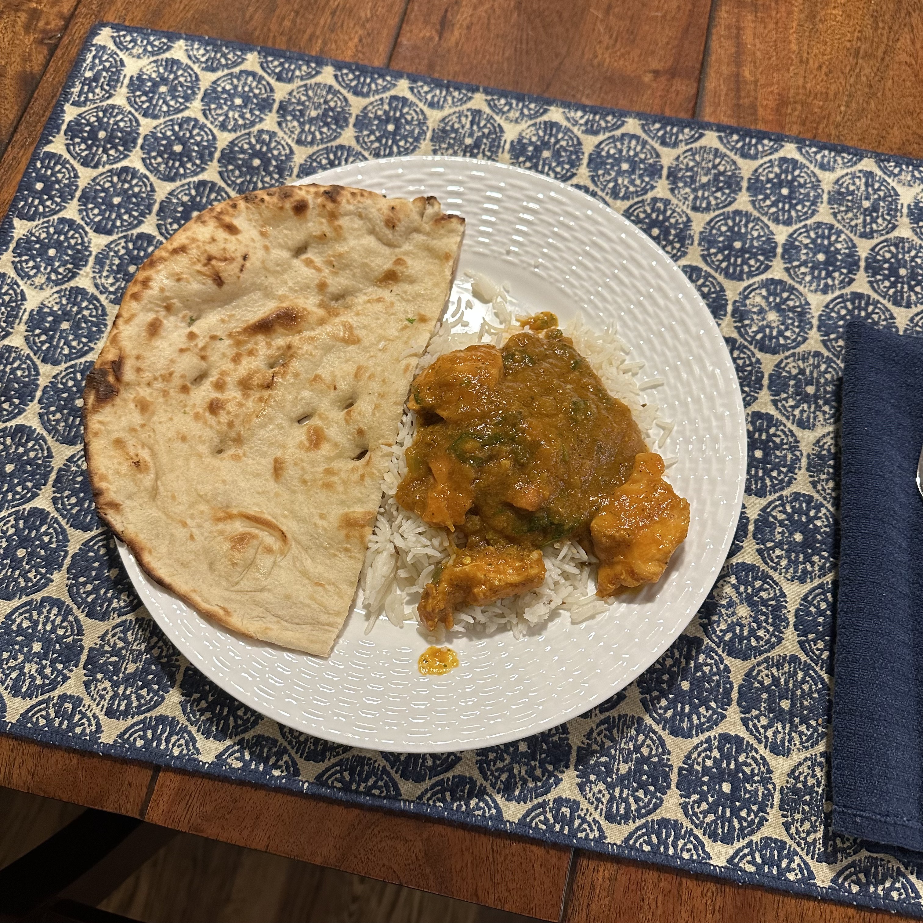 I don’t feel so great today. I can’t tell if it is a little cold or allergies or what. Kelly and I were going to go out to dinner, but I didn’t feel up to it. So we got Indian take out and a milkshake. Bedford Farms and Holi Indian Restaurant are right next door. We ate the milkshake first on the car ride back home, and Oreo frappe. Back at home, we had chicken curry with rice and naan. It was good and very spicy, but I like some of their other dishes better so I probably wouldn’t get it again.