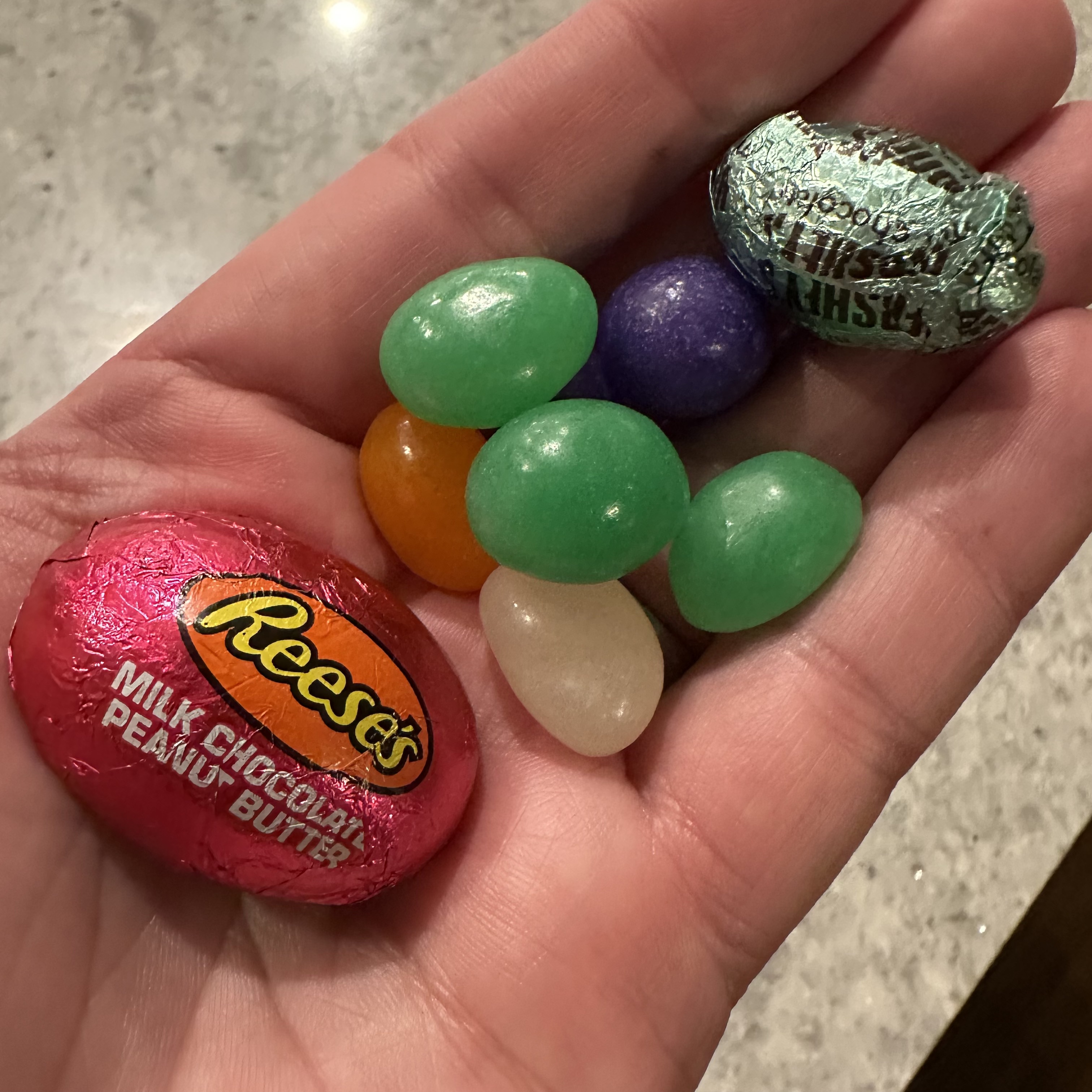 For dinner I made pork tenderloin with mashed potatoes and carrots. My carrot recipe is pretty good, I should write it up, but it’s basically just carrots with garlic powder and paprika roasted for 35 minutes at 400°. After that I raided the Easter basket again.