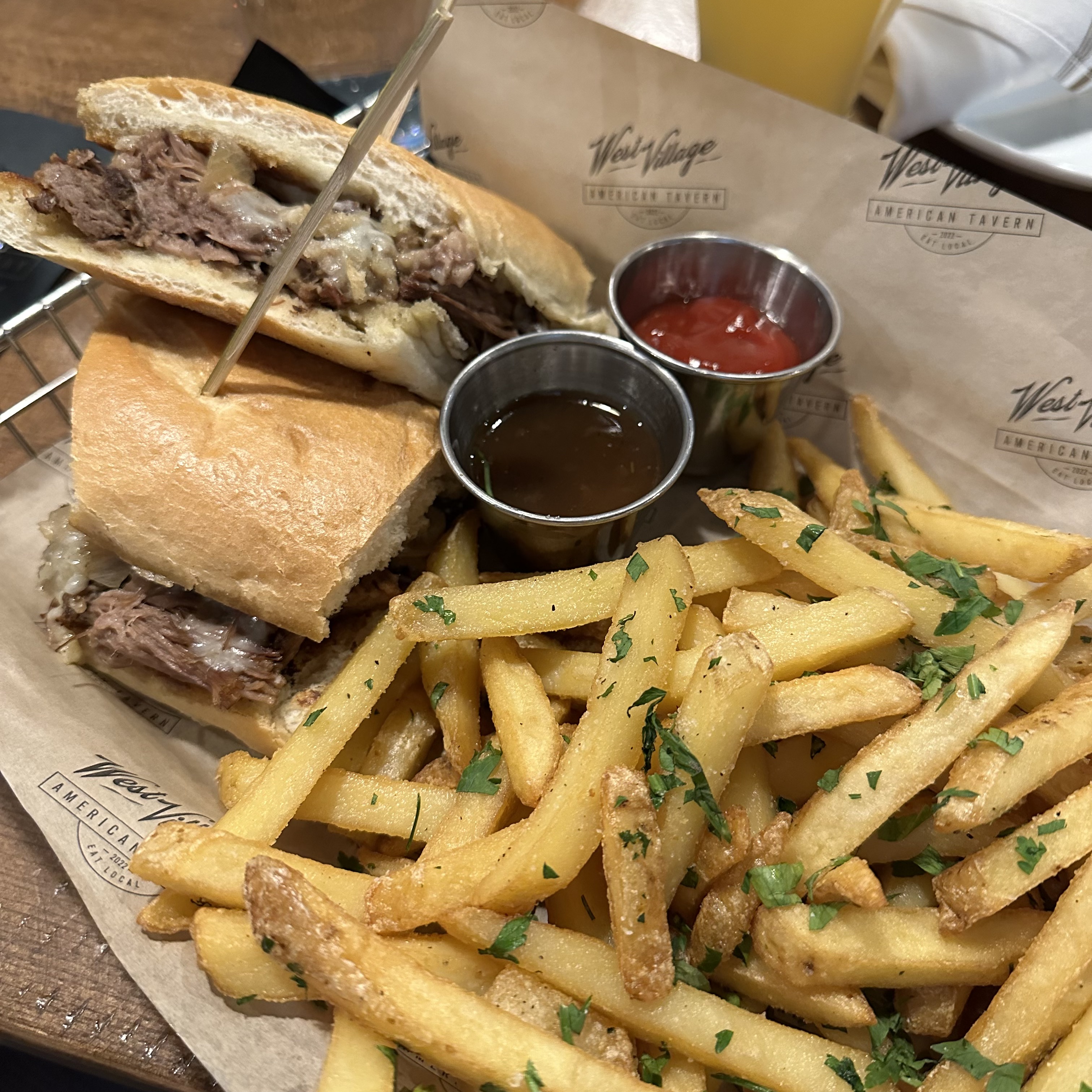 I had a very long day. I worked from home in the morning, but then I had meetings for a board I’m on until 11:00 p.m. Fortunately there was food. I had a bowl of cereal at home in the morning. For lunch I was back at West Village Tavern. Today I tried the french dip, which was really more of a pot roast sandwich. I like those so it was ok, but I was expecting something different. At my meeting, we had pizza. I don’t know where it was from. It was just ok.