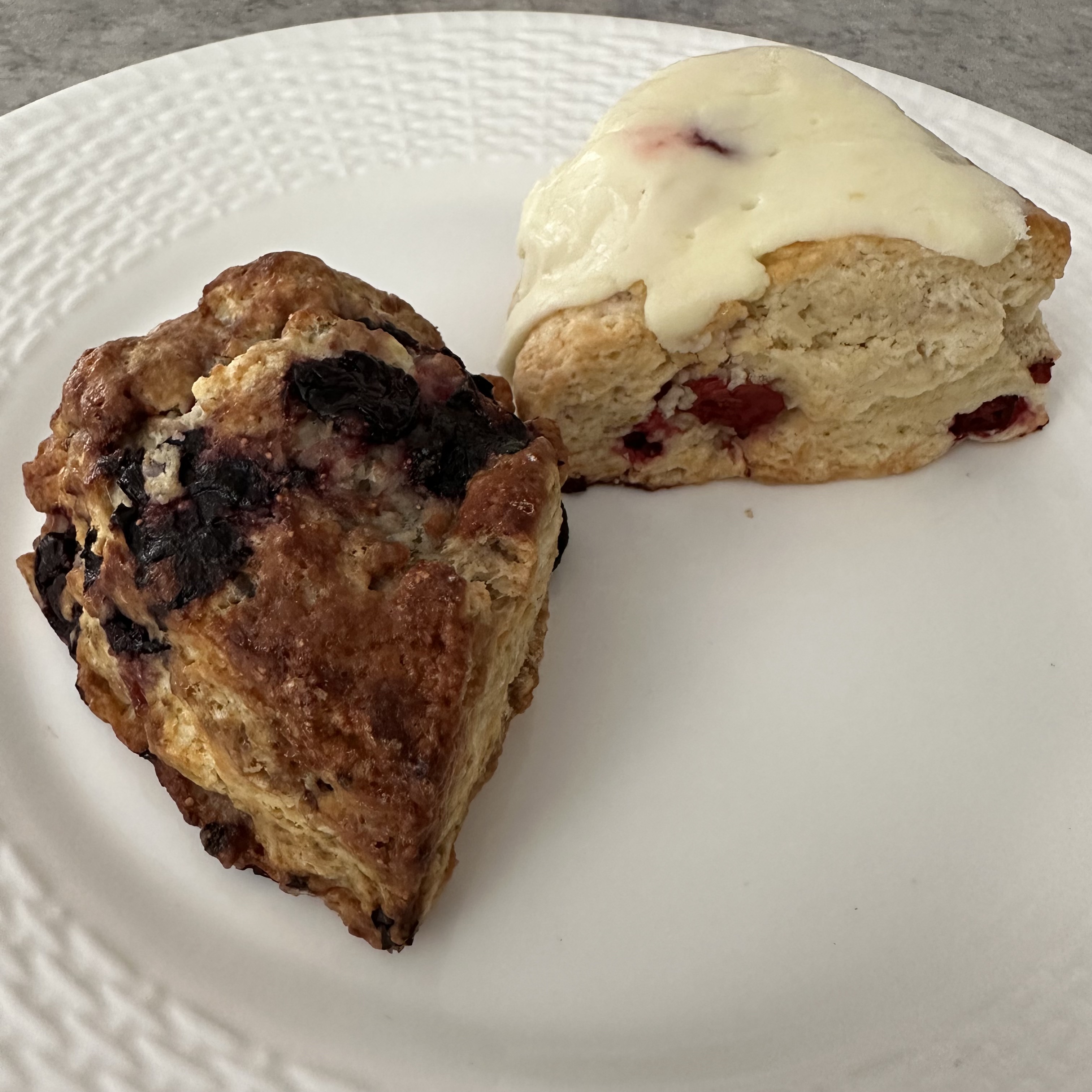 Verrill Farm is where we we get our farms share, but we used to go there all the time for breakfast. They once had breakfast sandwiches made to order on the weekend. When we stopped by today there were none of those, but there were scones and they make great scones. We had the cranberry-orange, a long time favorite, and the blueberry-lemon. They were delicious. I also had a little snack of pretzels in the afternoon.