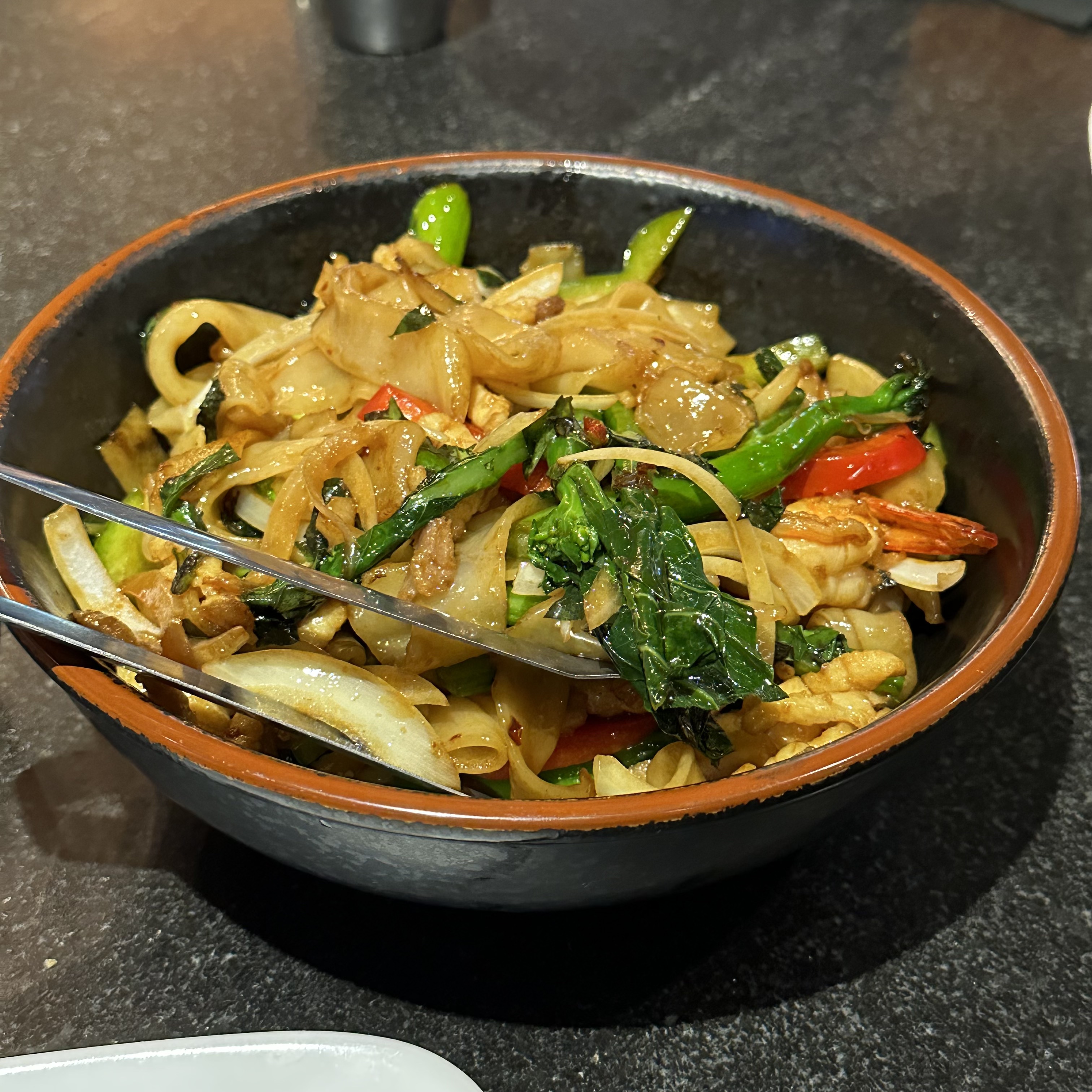 Finally the long weekend. It has been a grueling two weeks and I’m glad to have a break. I was out of work early today and had leftovers of last night’s pasta. I ate it cold and actually enjoyed it more than I did last night. When my wife got off work we met at Karma. In addition to drinks, I had a Mai Tai, we got crab rangoon and basil chow foon. It was our first time trying basil chow foon and we both really liked it. The only thing I avoided was the broccolini because it’s just too bitter for me.