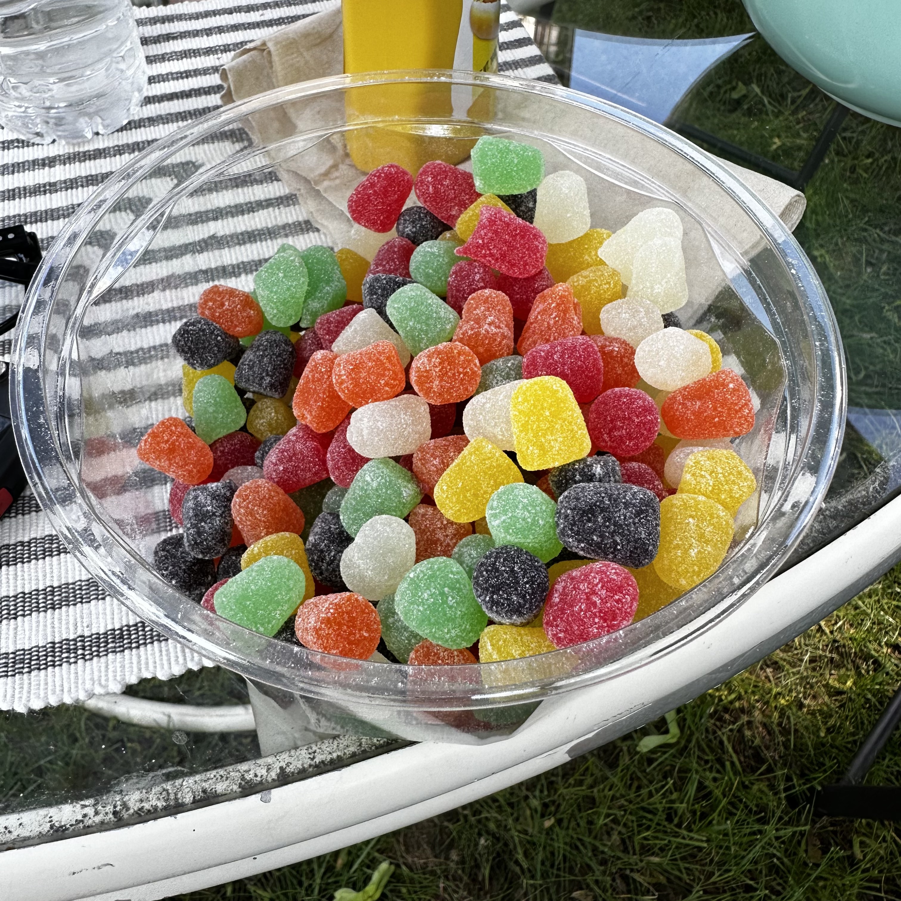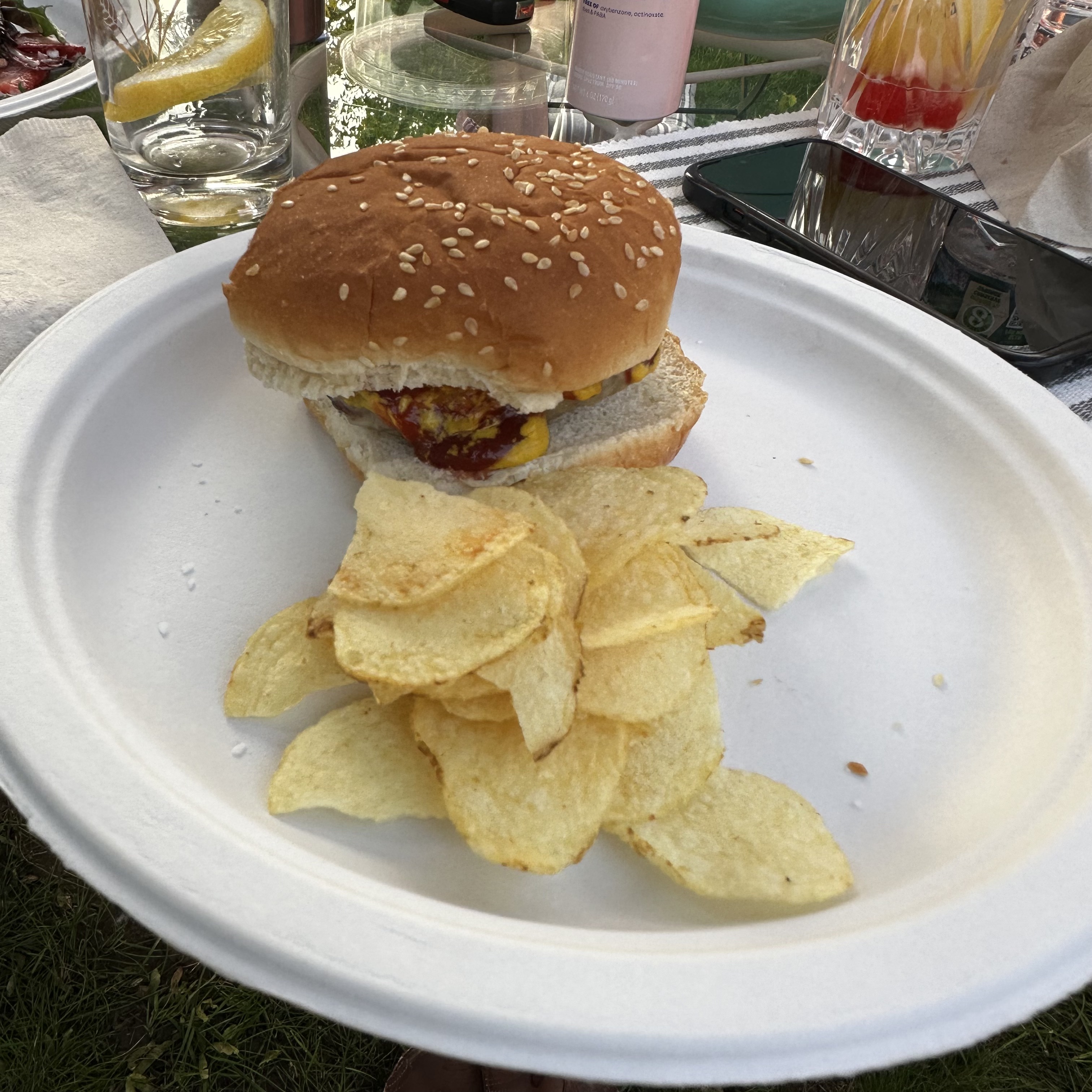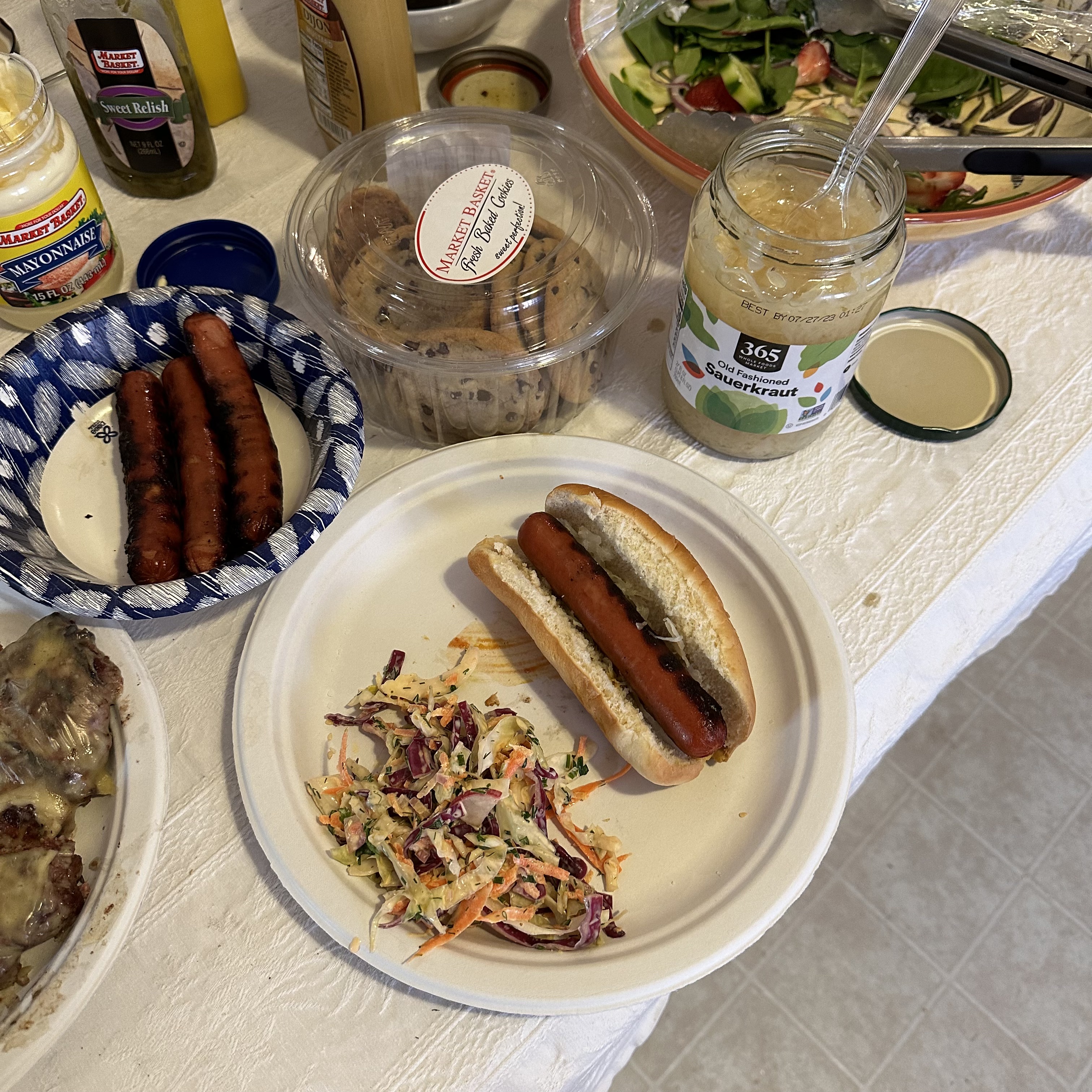 My friend Michael had a cookout for Memorial Day Weekend. Thomas and I went over, but before I left I had a ham sandwich. When I got there I started with kielbasa dipped in yellow mustard. The picture came out blurry, but you get the idea. Then they opened a giant thing of spice drops, which I admittedly had far too many of. After that he made burgers and dogs. I ended up having two burgers and a hot dog. I also had chips and slaw. It was far more than I should have eaten, but it was too good to stop.