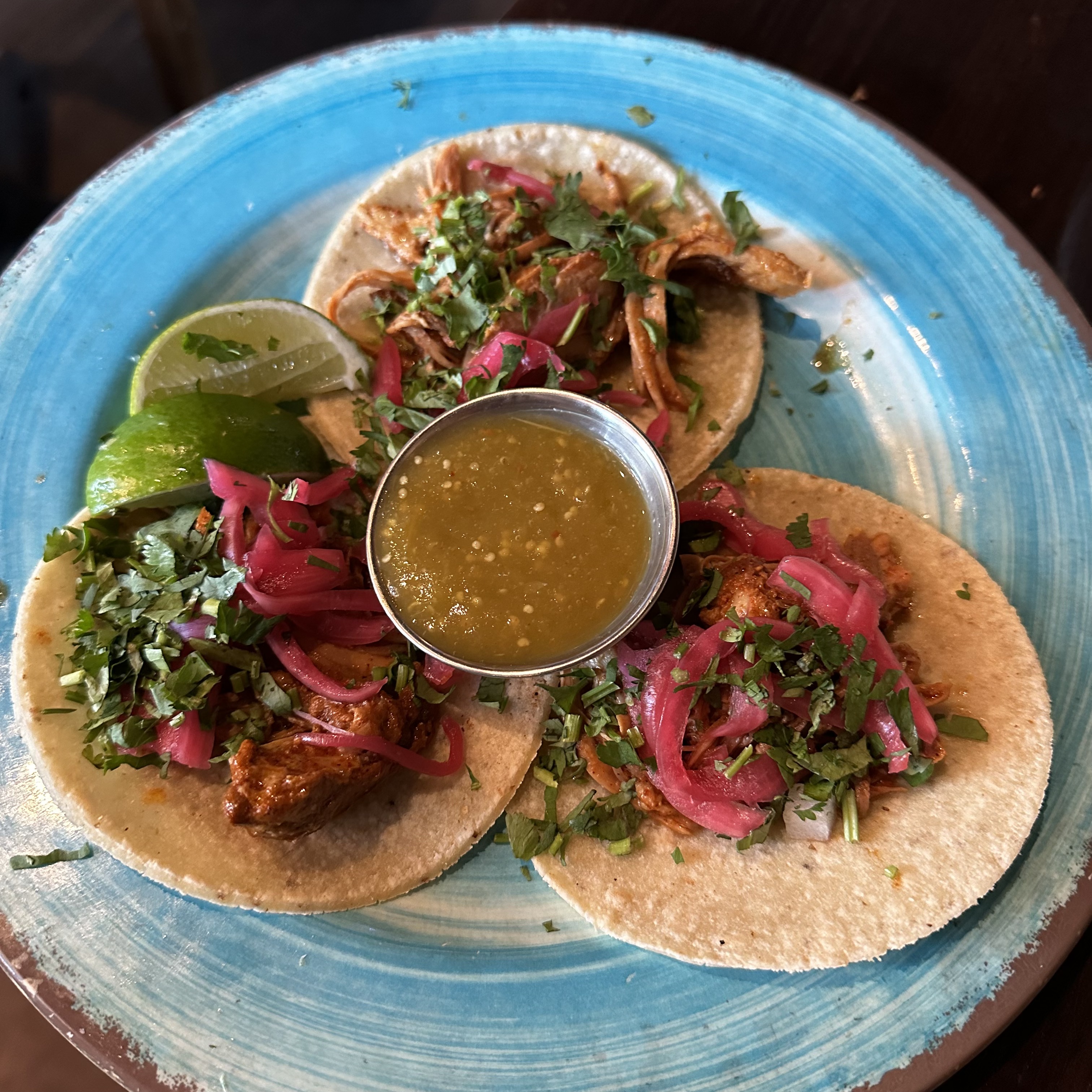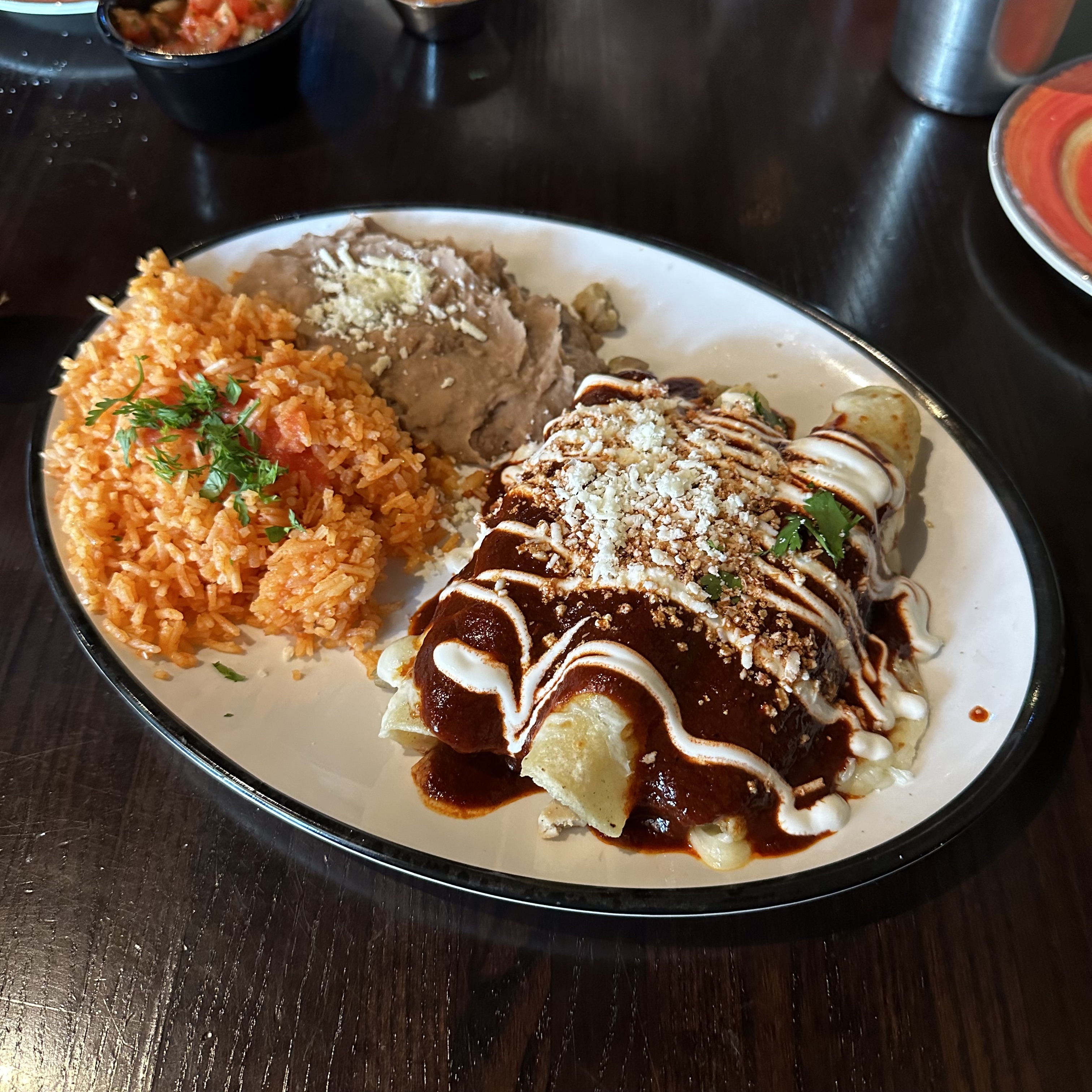 Back to work. I just took a piece of pizza for lunch and ate it cold. I might have liked it better that way. For dinner we went to Adelita and got some Mexican food. We had chips and salsa, chicken enchiladas, and Tacos Cochinitas, bbq pork shoulder. We had never tried them before but they were really good.