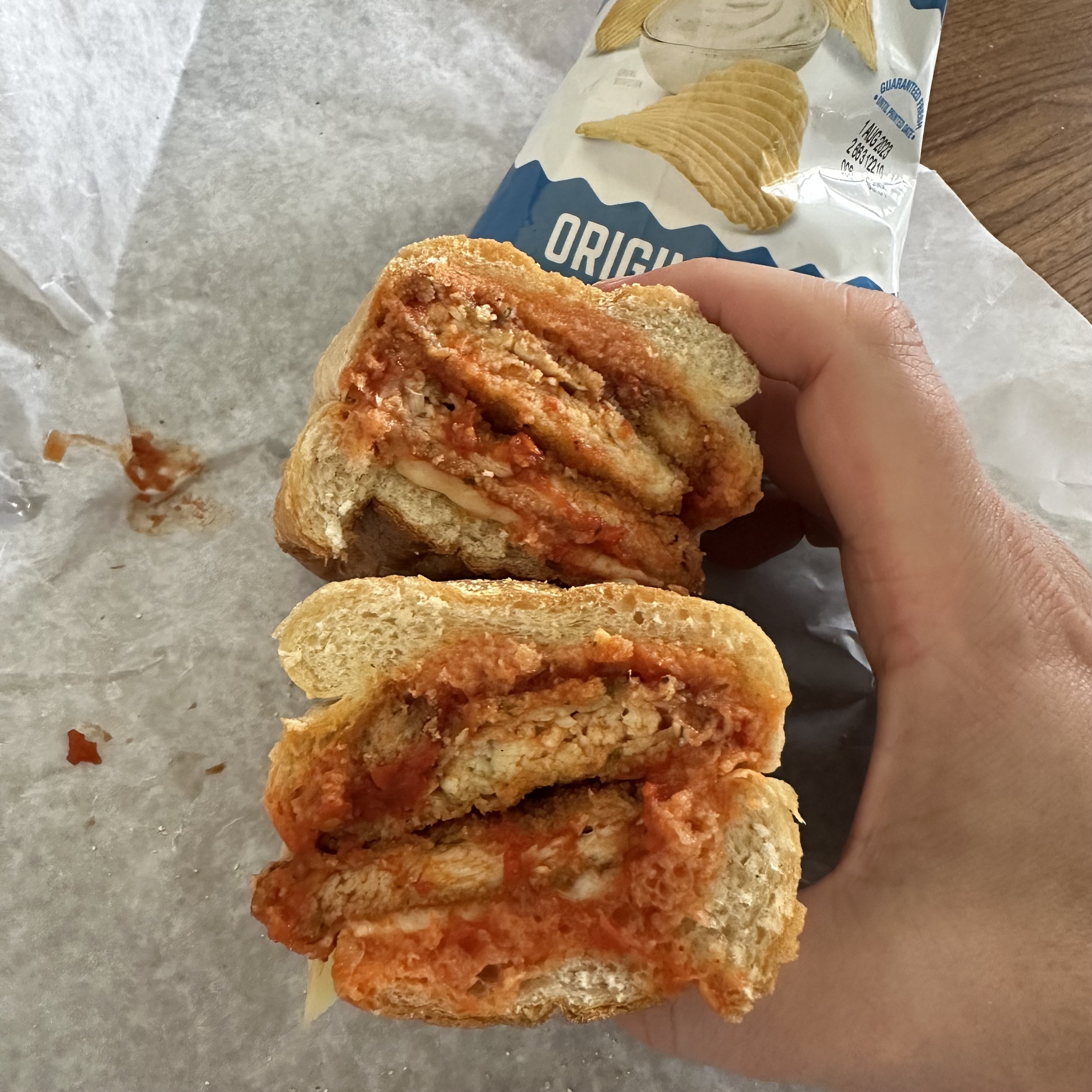 Back at DeNo’s for the second time this week. I try not to go there twice a week, but it is so close and easy that sometimes it just happens. Today I got a chicken parm sub and some chips. After work I met up with Kelly at the Colonial Inn and we got fried calamari and the chicken quesadilla. We get that quesadilla a lot, and though it’s not authentic it’s pretty good. I also ate a dinner roll cause I was hungry. For dessert I got cookies and cream ice cream sandwiches.
