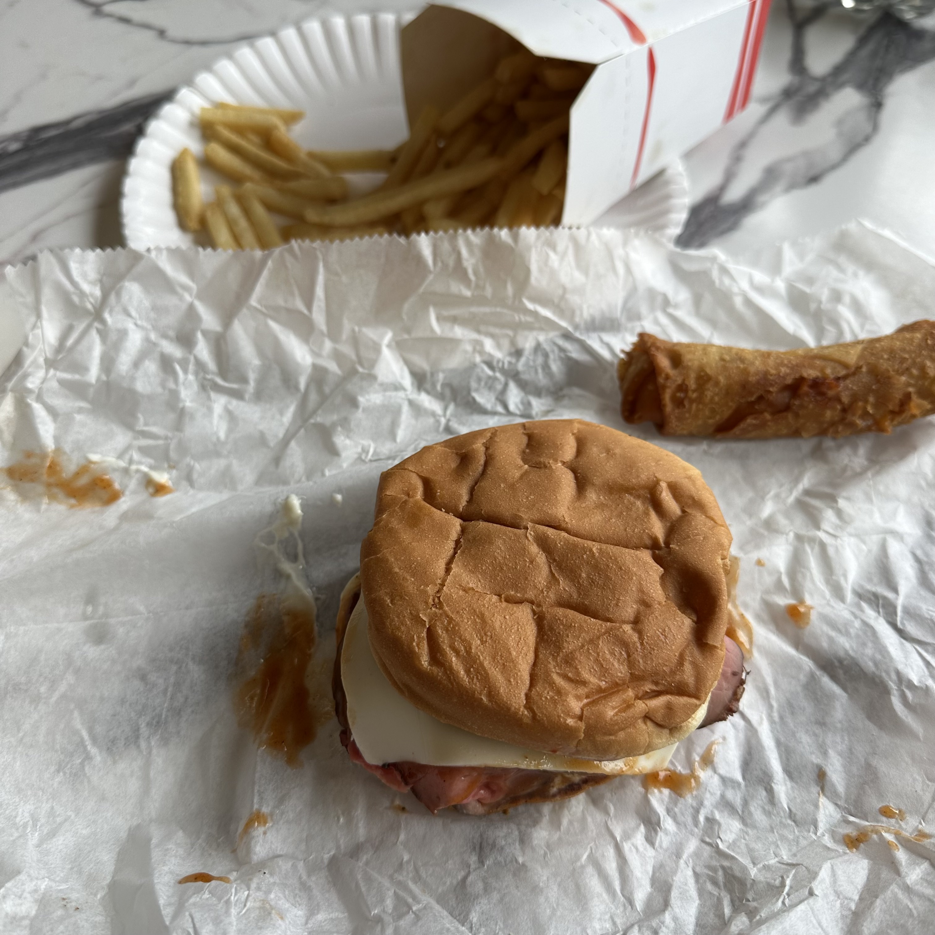For lunch today we stopped at Bedford House of Beef. I feel like it isn’t as good as it was pre-COVID. In particular they seemed to have changed their fries and they absolutely changed their horseradish sauce. I got a jr. three-way, a pizza roll, and shared some fries.