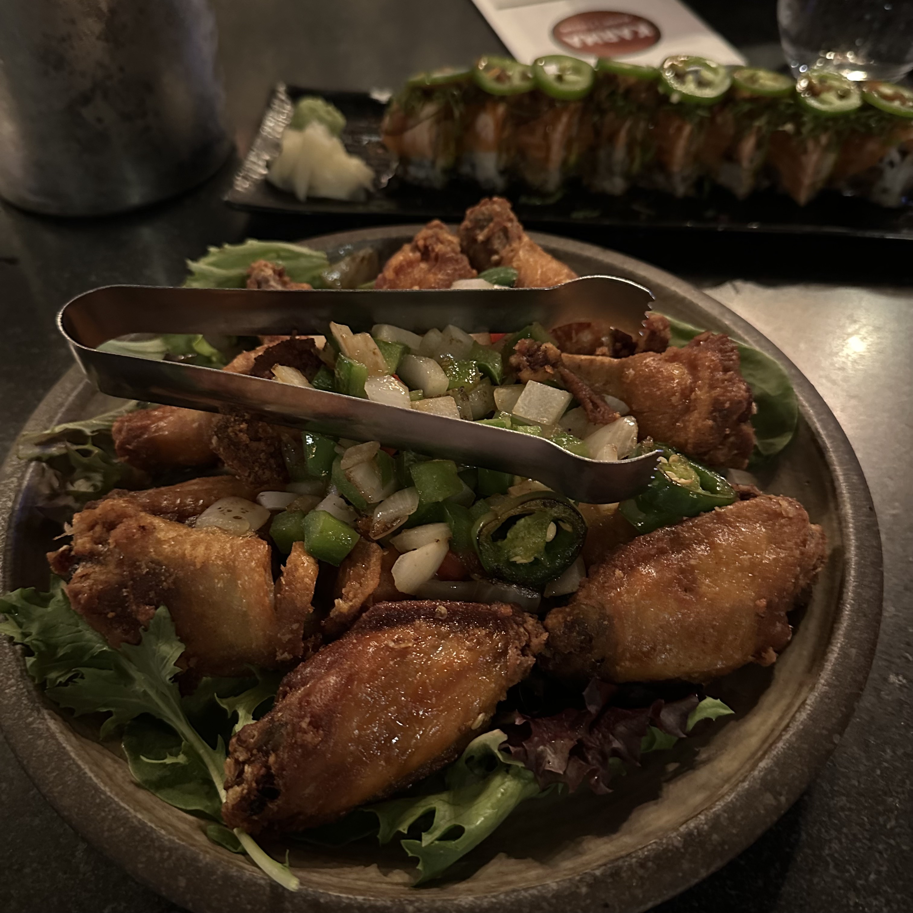 I had another bowl of Honey Bunches of Oats this morning. But the day was really about Karma. I went there for lunch and got some sushi, crazy maki, yellowtail and scallion maki, and shrimp and yellowtail nigiri. Then I went back for a late dinner and got salt and pepper wings which is one of my favorites. It was particularly good and the jalapeños were extra spicy.